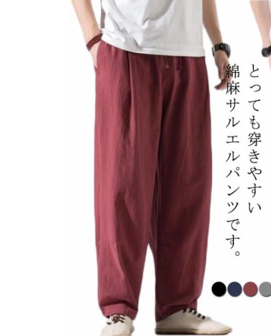 とっても穿きやすい綿麻サルエルパンツです。綿麻の素材を採用しており、通気性がよく、吸汗速乾にも優れているので、暑い夏でも快適。ゆったりとしたデザインで、窮屈感がありません。ウエスト部分にはゴムが入っており伸縮性よく、調整紐が付き、自分の好みで調節できます。感動の動きやすさを誇るワイドサルエルシルエットで着てないような着心地よさ。汗を速く吸収、拡散して、快適なクール&ドライを持続できます。股上深めのゆったりとしたシルエットでヒップや太ももカバー力抜群。 色もサイズも豊富に展開して、選べるのも魅力。カジュアルな見た目ながらも、無駄な装飾を施さないシンプルなデザインで様々なコーディネートにマッチします。