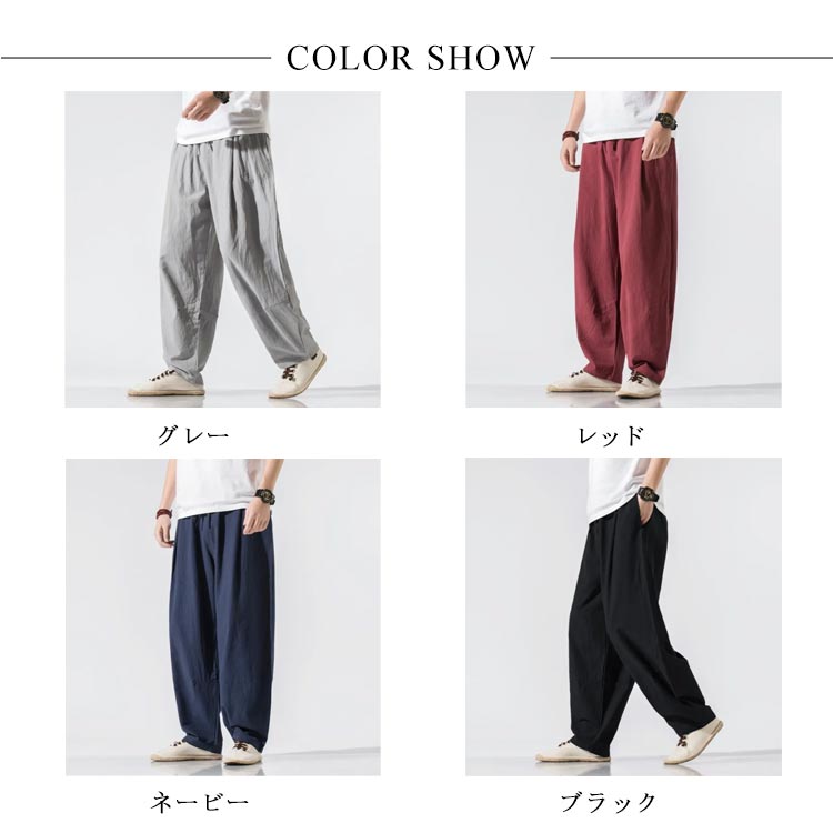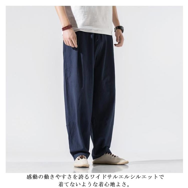 サルエルパンツ メンズ 夏服 ズボン ワイドパンツ 送料無料 袴パンツ バギーパンツ ゆったり ビッグシルエット 春 夏 秋 麻 ズボン リネン 父の日 ギフト 普段着 男性 ズボン ゆったり ストレート ロング丈 M/L/XL/2XL/3XL/4XL/5XL