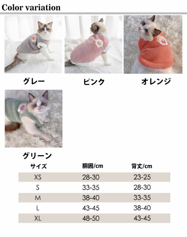 | 【ペット服】【猫?小型犬】 【XS S M L XL】【4color】 可愛いお部屋着 軽量で保温性に優れ、モコモコ暖かい。 秋冬の時期にぴったり! 散歩などにも適用します! | |