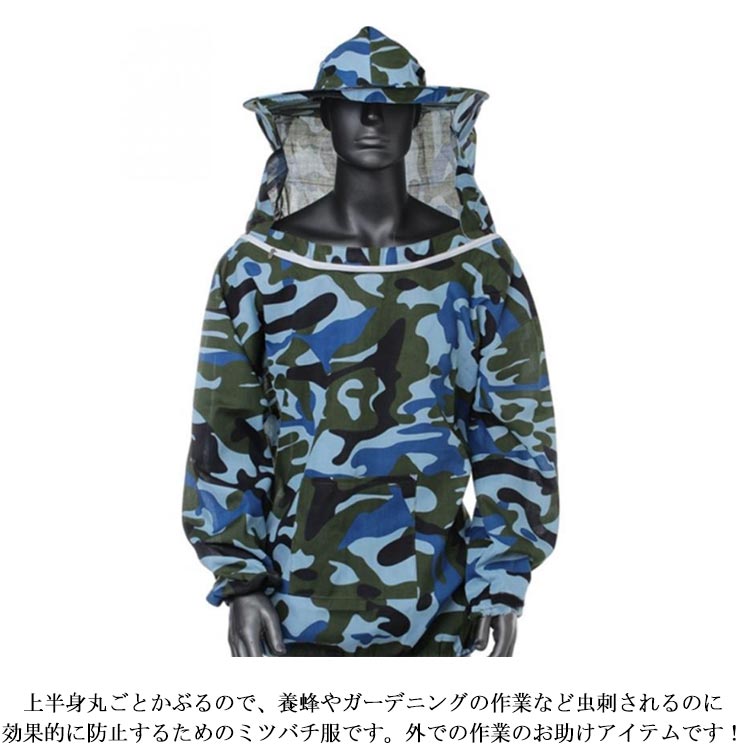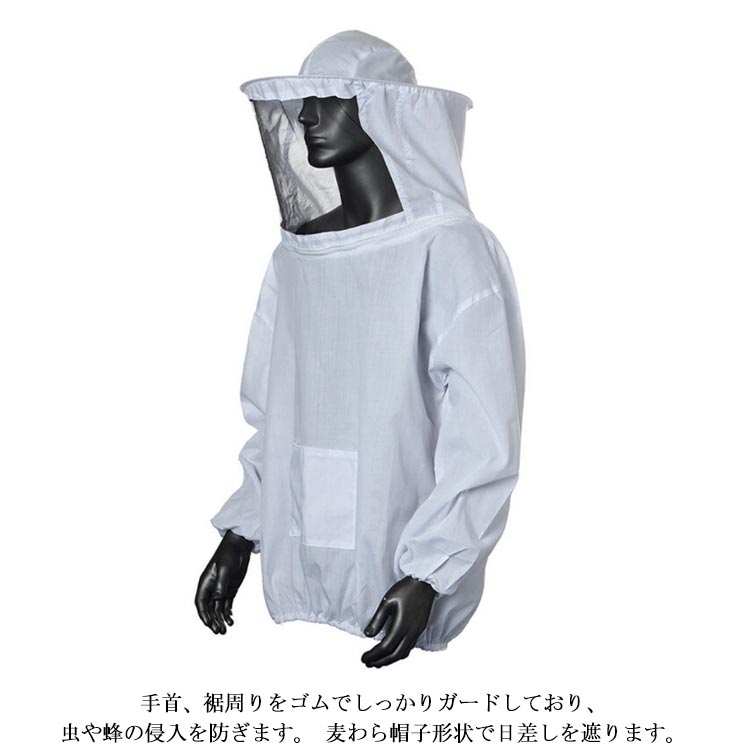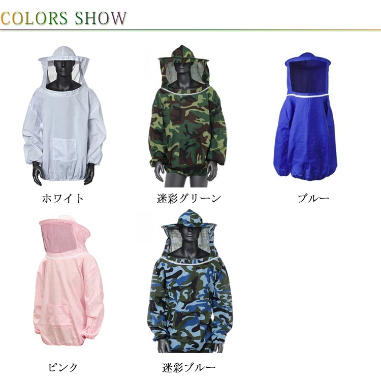 養蜂用 防護服 上着式 フェイスネット 帽子付き ミツバチ服 防虫服 通気性 軽量 アウトドア ガーデニング 養蜂器具 蚊/虫対策 農作業 全5色 養蜂用蜂防護服 フェイスネット付 作業服 虫さされ防止 男女兼用 蜂巣 送料無料