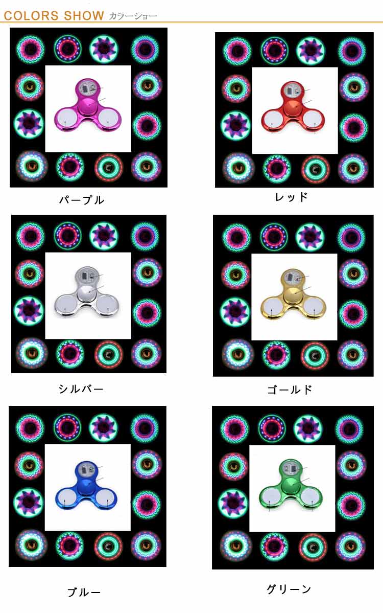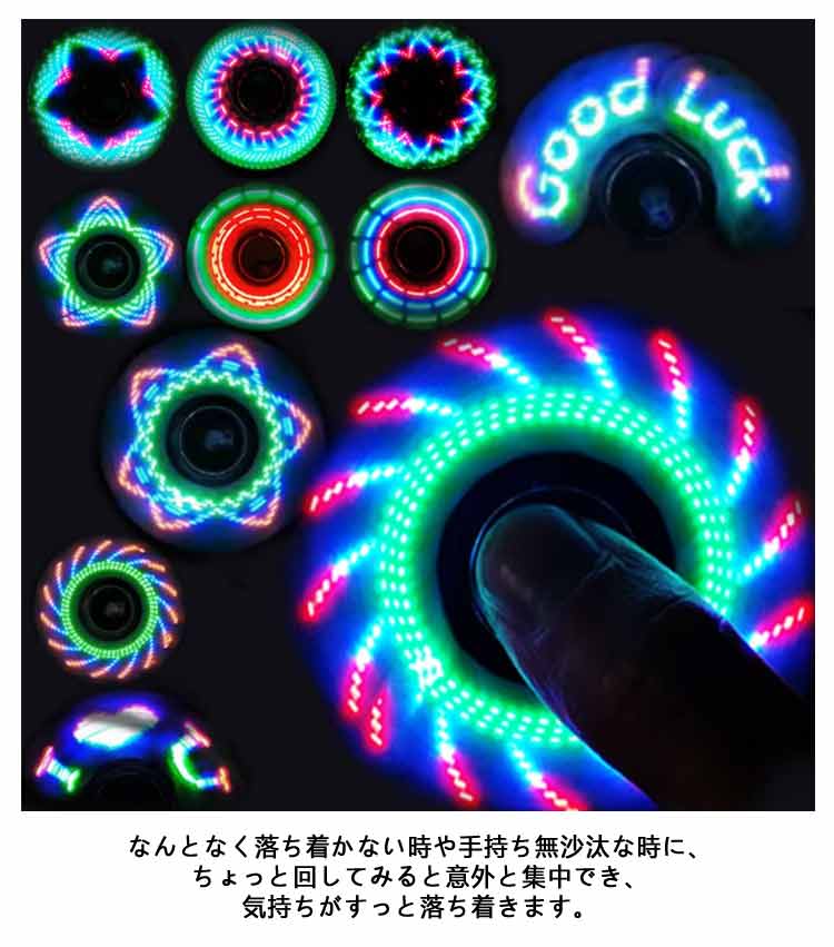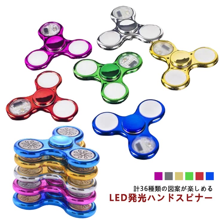 ハンドスピナー LED発光 36種類 図案 指先のコマ おしゃれ 図案形成 光る ハンド スピナー ストレス解消 高速回転 フィンガースピナー 子供 大人 玩具 レインボー 虹色 カラフル 可愛い おもちゃ ギフト プレゼント 送料無料