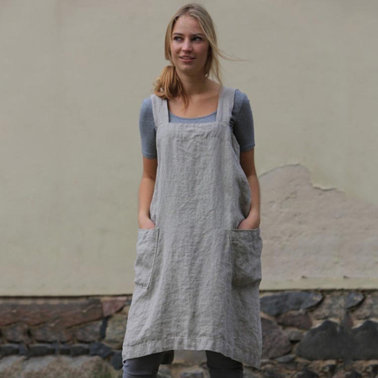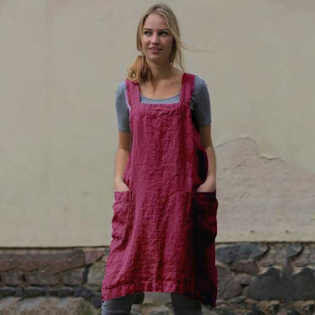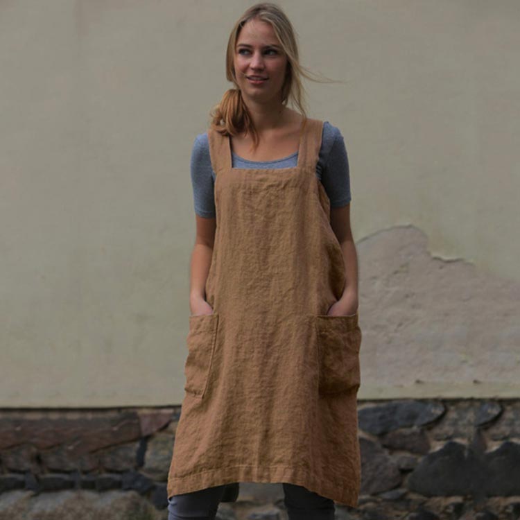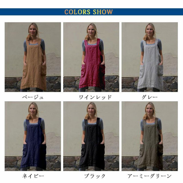 エプロン 保育士 おしゃれ 綿麻 カフェエプロン 無地 ワンピース H型 ゆったり リネン ナチュラル 無地 シンプル 仕事用 かぶり かぶる 綿麻 北欧 かわいい ポケット付き レディース ショート丈 大人 割烹着 シンプル 母の日 大きいサイズ 汚れ防止