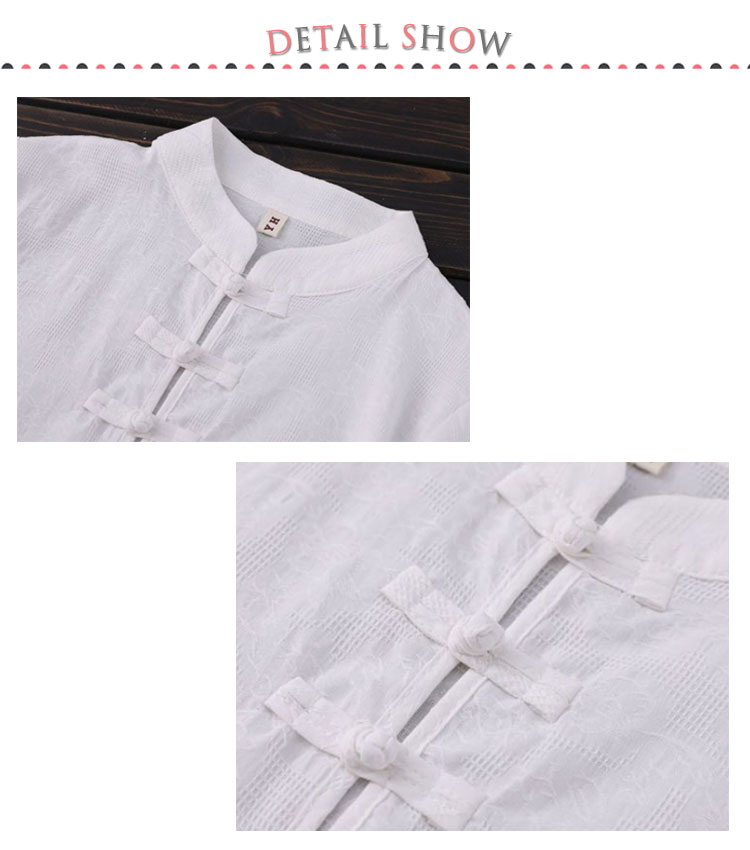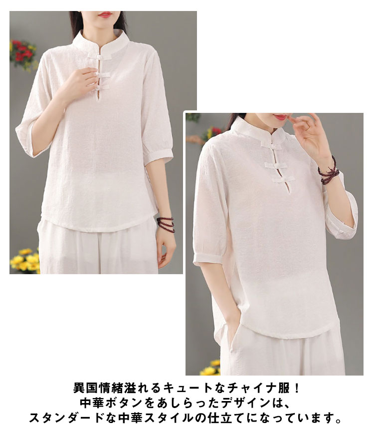 繊細で華麗なチャイナボタンがアクセント、ゴージャス度が一気にアップ。リラックス感のあるシルエットとゆるっとした着心地で着痩せ効果・体型カバーが叶います。綿混紡素材にしたショート丈の中国風の上着!通気性や吸汗性に優れいている麻生地は肌に優しく、快適な着心地。異国情緒溢れるキュートなチャイナ服!中華ボタンをあしらったデザインは、スタンダードな中華スタイルの仕立てになっています。