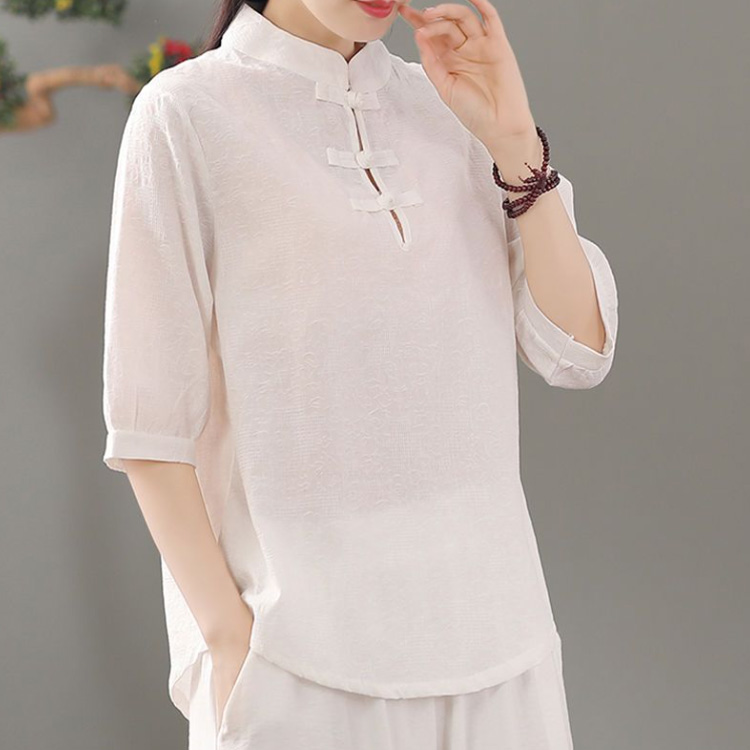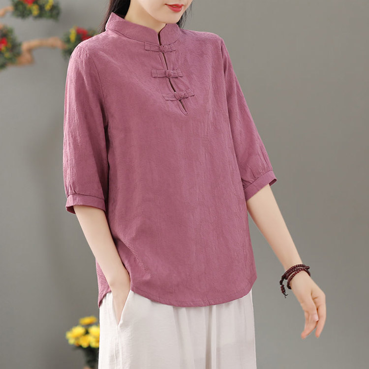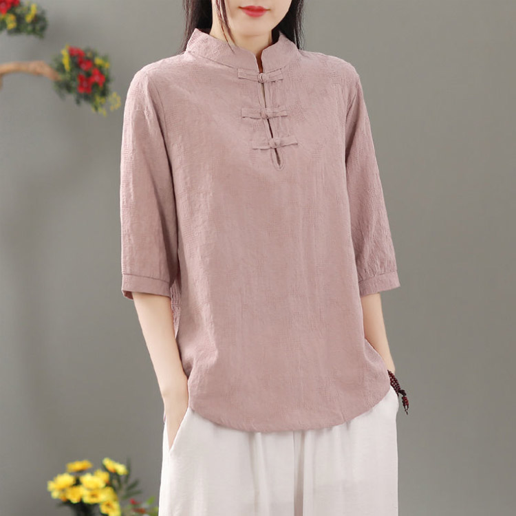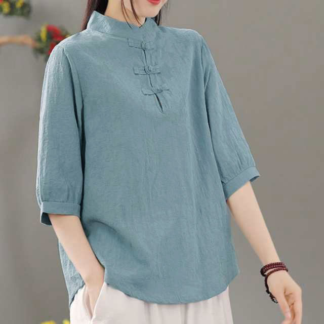 リネン混 リネン 麻生地 送料無料 リネンブラウス 半袖ブラウス レディース チャイナボタン 麻 ブラウス チャイナカラー 綿 無地 チャイナ風 中華 中国風 Tシャツ 綿 羽織 体型カバー