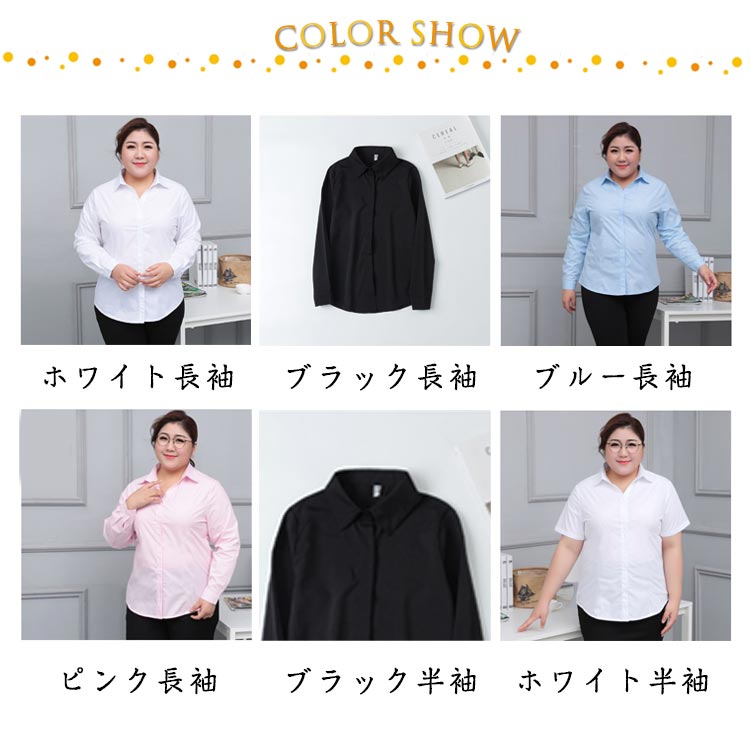 8XLまで 大きいサイズ フォーマル レディース シャツ 長袖 半袖 選べる 白シャツ スーツ 半袖シャツ スーツ ブラウス インナー オフィス ビジネス 事務服 制服 ボタン ゆったり ゆるシャツ ぽっちゃりさん OL 会社 通勤 ワイシャツ白 ホワイト S M L XL 2XL
