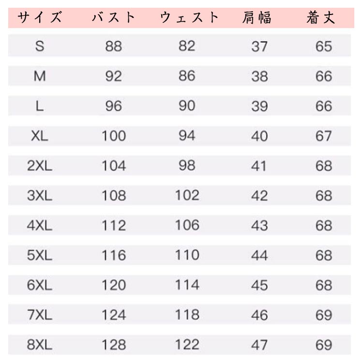 | サイズ | S M L XL 2XL 3XL 4XL 5XL 6XL 7XL 8XL |