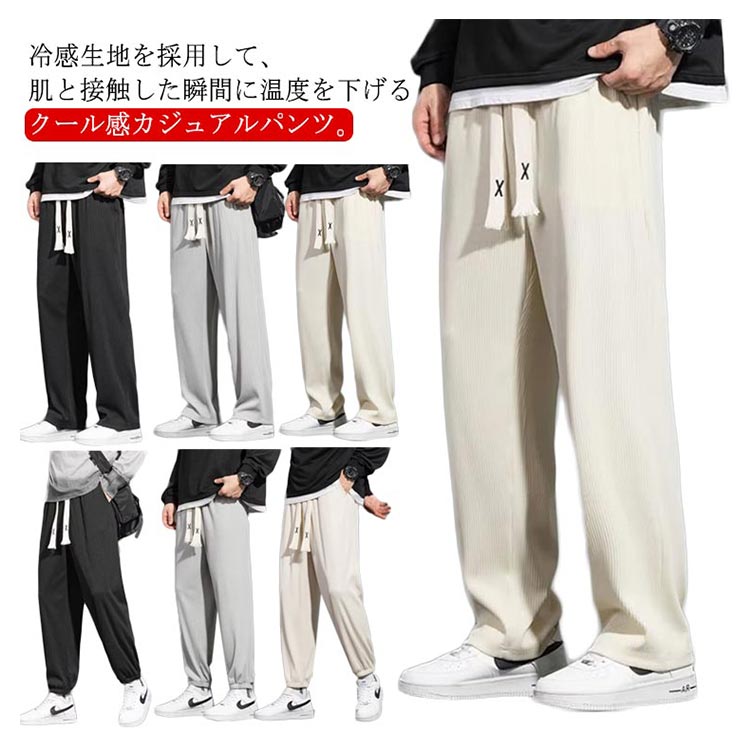 冷感 パンツ メンズ 接触冷感 カジュアルパンツ ジョガーパンツ ストレートパンツ リブ パンツ 2タイプ 軽量 薄手 夏 涼しい スウェット ワイドパンツ イージーパンツ ひんやり 長ズボン アイスシルク アイスシルクパンツ 大きいサイズ 運動 作業 カジュアル M ~ 5XL