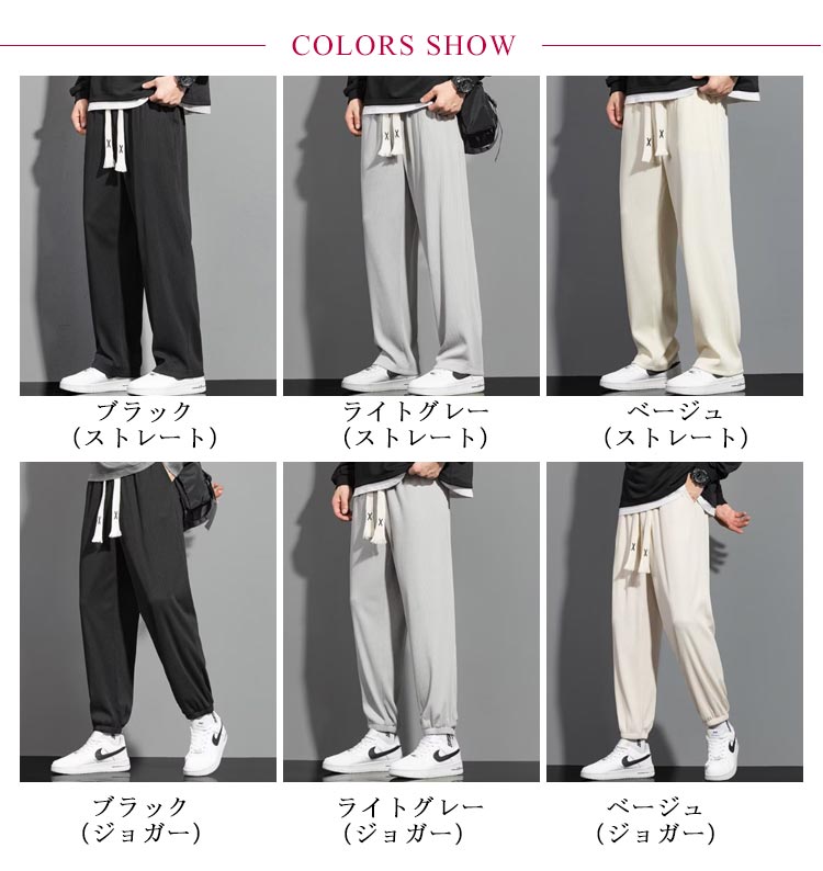 | 色 | ブラック(ストレート) ライトグレー(ストレート) ベージュ(ストレート) ブラック(ジョガー) ライトグレー(ジョガー) ベージュ(ジョガー) |