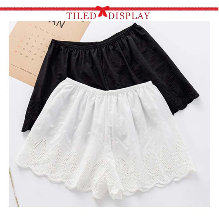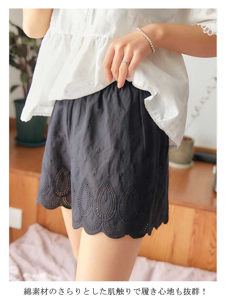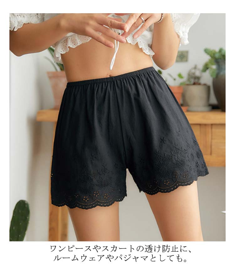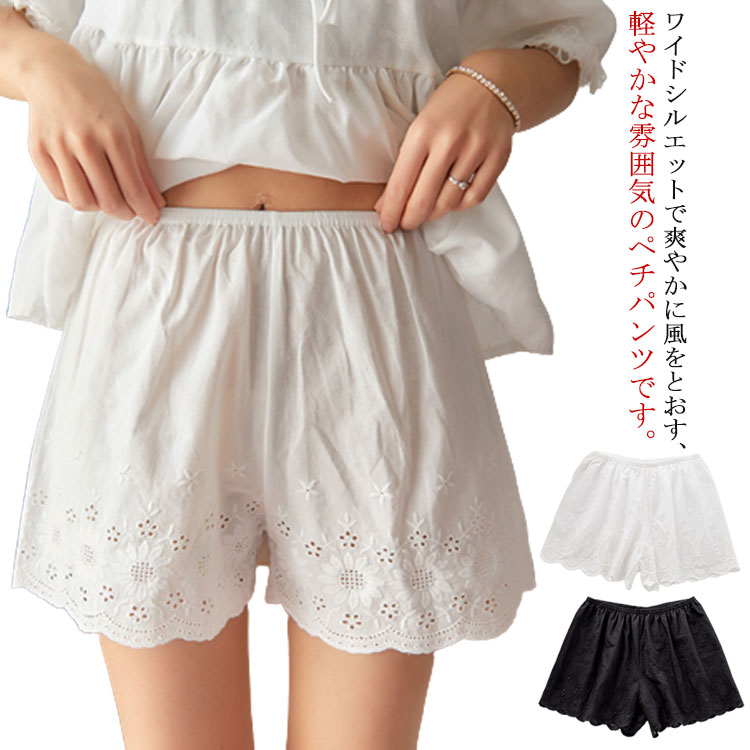 ペチパンツ ペチコート レディース 綿 インナーパンツ ショート丈 ワンピース下 春 夏 秋 コットン ゆったり ナチュラル 透け防止 白 黒 ゆったり かわいい 大きいサイズ 下着 裾 スカラップ ルームウェア 送料無料
