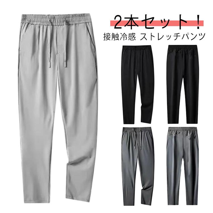 2本セット!アイスシルク ロングパンツ ビジネス ストレッチパンツ ゴルフパンツ 夏 カジュアルパンツ ズボン 細身 パンツ アイスシルク メンズ 夏 スキニーパンツ 薄手 接触冷感 速乾 薄手 ゴルフウェア ストレッチ 軽量 アイスシルクパンツ