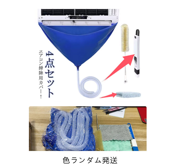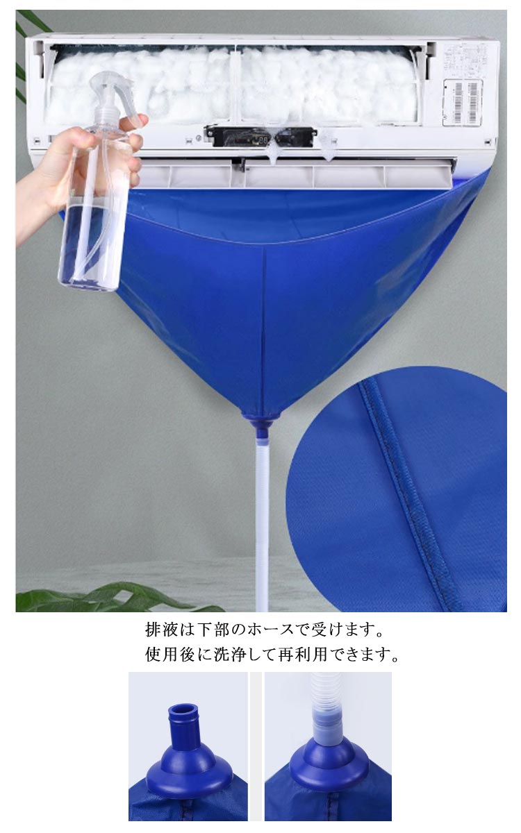 エアコンクリーニングカバー エアコン洗浄カバー 4点セット 排水ホース 布巾付き 繰り返し使用可能 エアコン掃除カバー ブラシ 壁掛け 簡単 家庭用 ウォーターカバー 防水カバー エアコン クリーニング 洗浄 掃除 家庭用 業務用