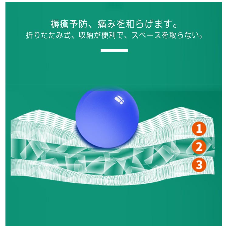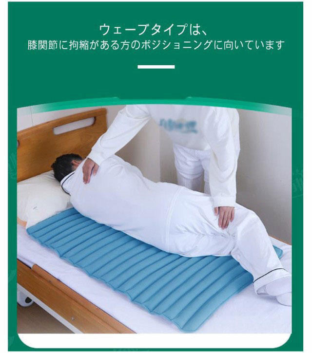 | 【床ずれ防止?褥瘡予防クッション】 【70x100cm】 褥瘡予防、痛みを和らげます。 折りたたみ式、収納が便利で、スペースを取らない。 ウェーブタイプは、膝関節に拘縮がある方のポジショニングに向いています。 ステッチ部分で脚のような丸い箇所を包み込みます。 | |