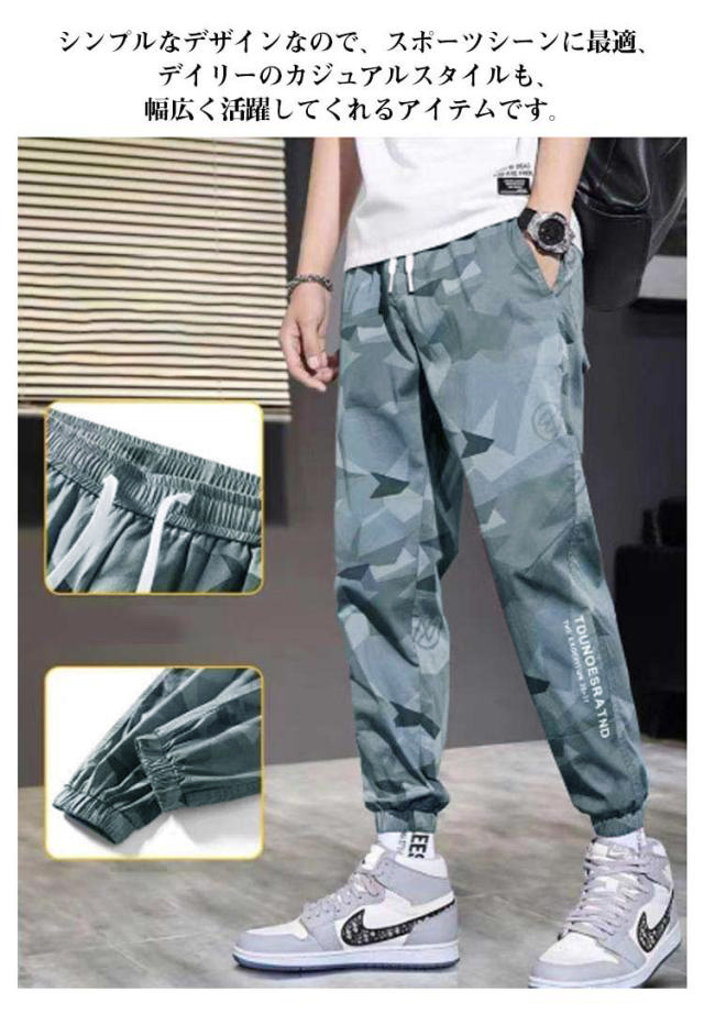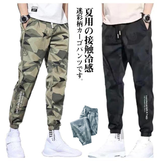 接触冷感 カーゴパンツ メンズ 迷彩柄 速乾 ジョガーパンツ 9分丈 パンツ ドライパンツ ロングパンツ 長ズボン ミリタリー ボトムス カジュアル スポーツウェア 涼感 ひんやり 通気 几何柄 カモフラージュ柄 アイスシルク M-5XL 送料無料