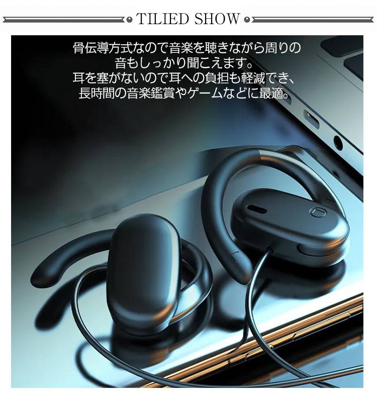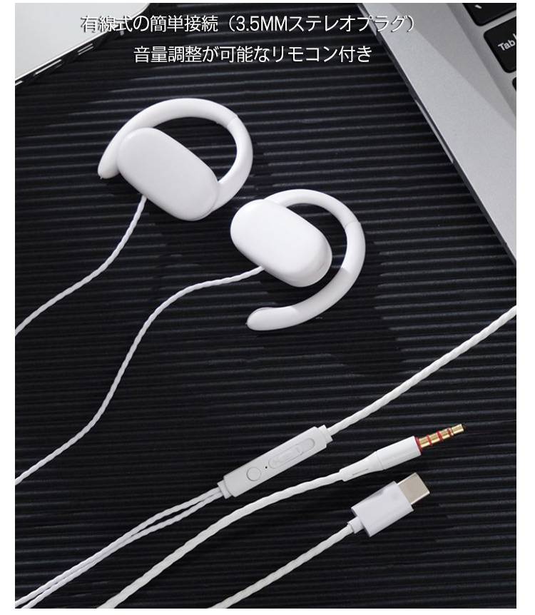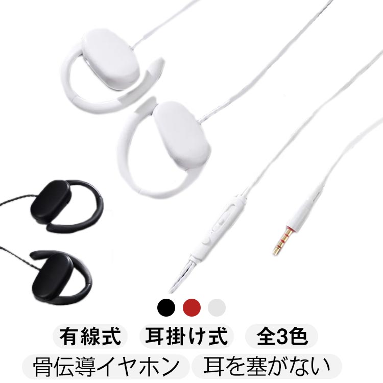 有線式 骨伝導イヤホン 耳を塞がない 耳掛け式 マイク付き 全3色骨伝導方式なので音楽を聴きながら周りの音もしっかり聞こえます。耳を塞がないので耳への負担も軽減でき、長時間の音楽鑑賞やゲームなどに最適。有線式の簡単接続(3.5mmステレオプラグ)音量調整が可能なリモコン付き充電いらずでマイクも搭載!有線なので突然充電が切れる心配もなし。パソコンやスマホに繋げば、いつでも利用可能。着けているのを忘れる装着感!軽量なうえに、耳掛け式の安定感により、快適な装着感を実現。