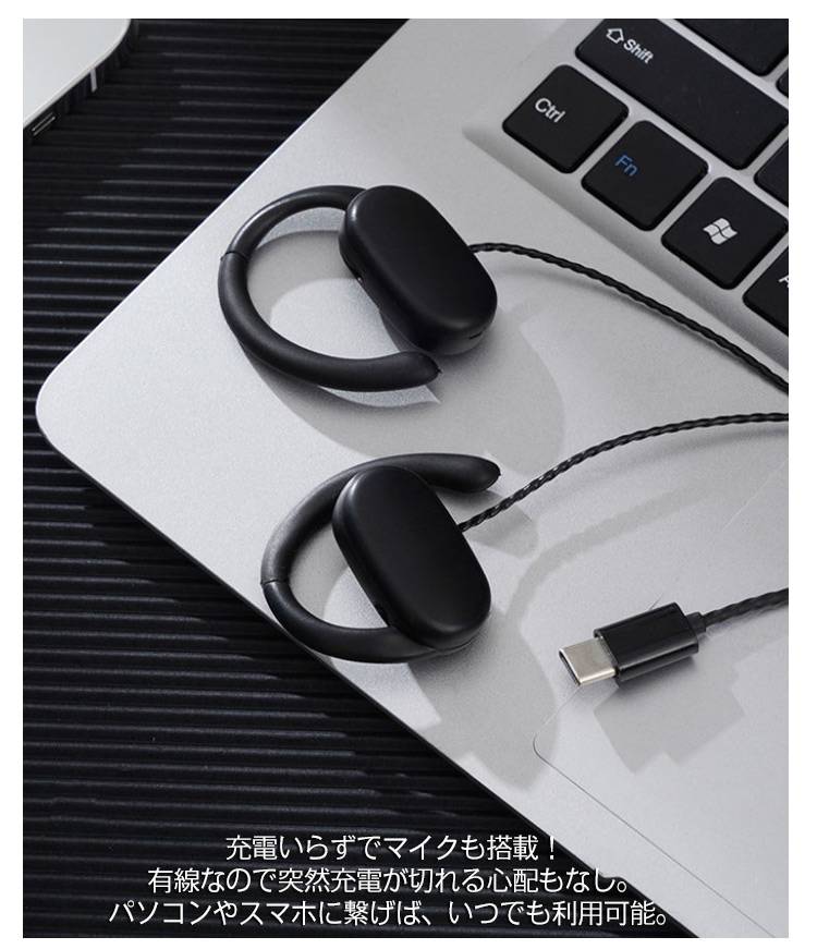 耳を塞がない 有線イヤホン 骨伝導イヤホン ながら聴きイヤホン オープンイヤー 開放型 イヤホン 耳掛け式 マイク付き ハンズフリー通話 骨伝導ヘッドセット 音量調整 軽量 テレワーク WEB会議 スポーツ 自転車 ゲーミングイヤホン 送料無料