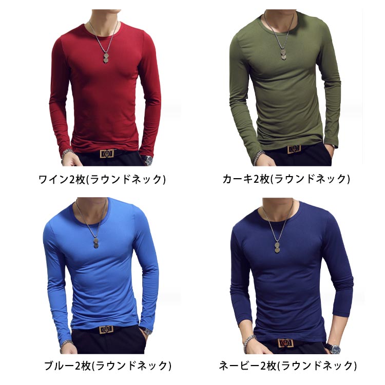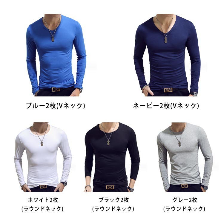 2枚セット ヒートテック 長袖 アンダーシャツ インナーシャツ メンズ 長袖tシャツ Vネック Uネック 丸首 スリム 細身 肌着 インナー ヒートインナー インナーtシャツ ストレッチ 無地 薄手 春 秋 冬 大きサイズ