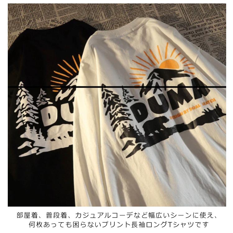 拘りの綿100%素材なので着心地は抜群。部屋着、普段着、カジュアルコーデなど幅広いシーンに使え、何枚あっても困らないプリント長袖ロングTシャツです。