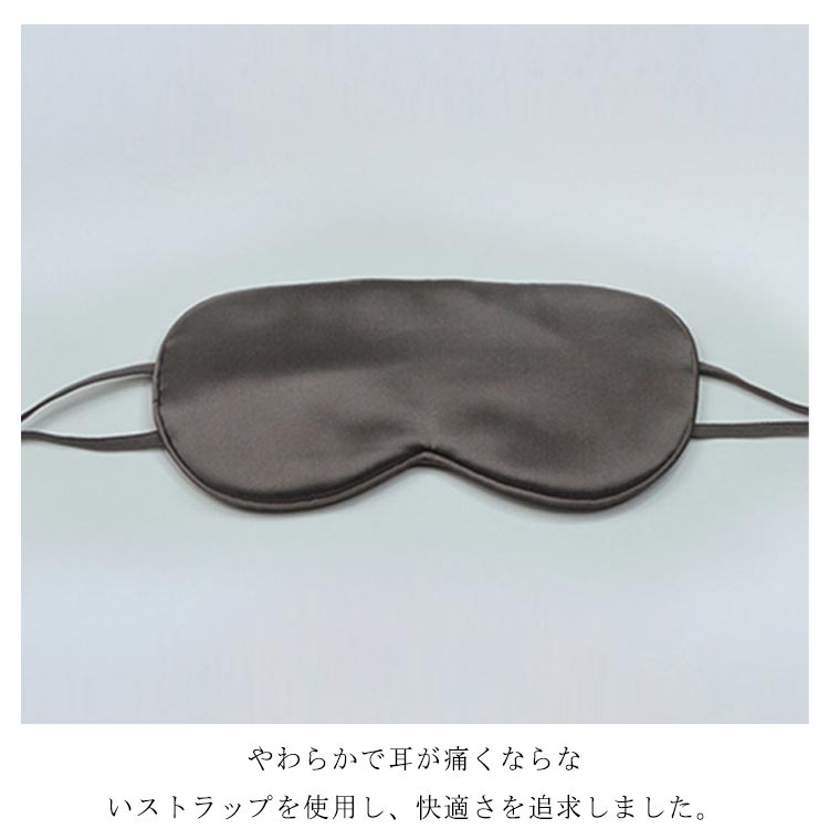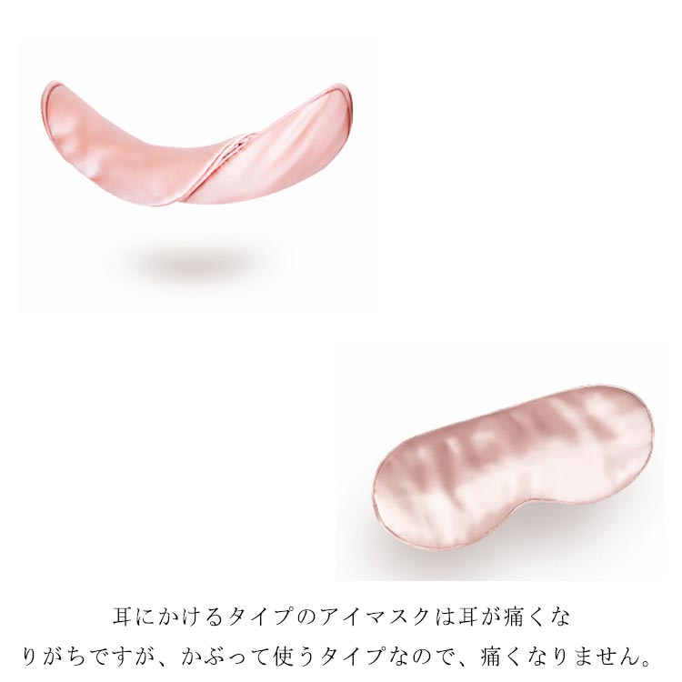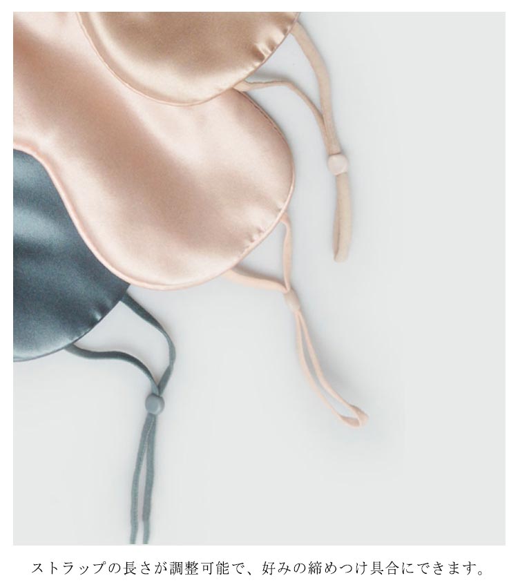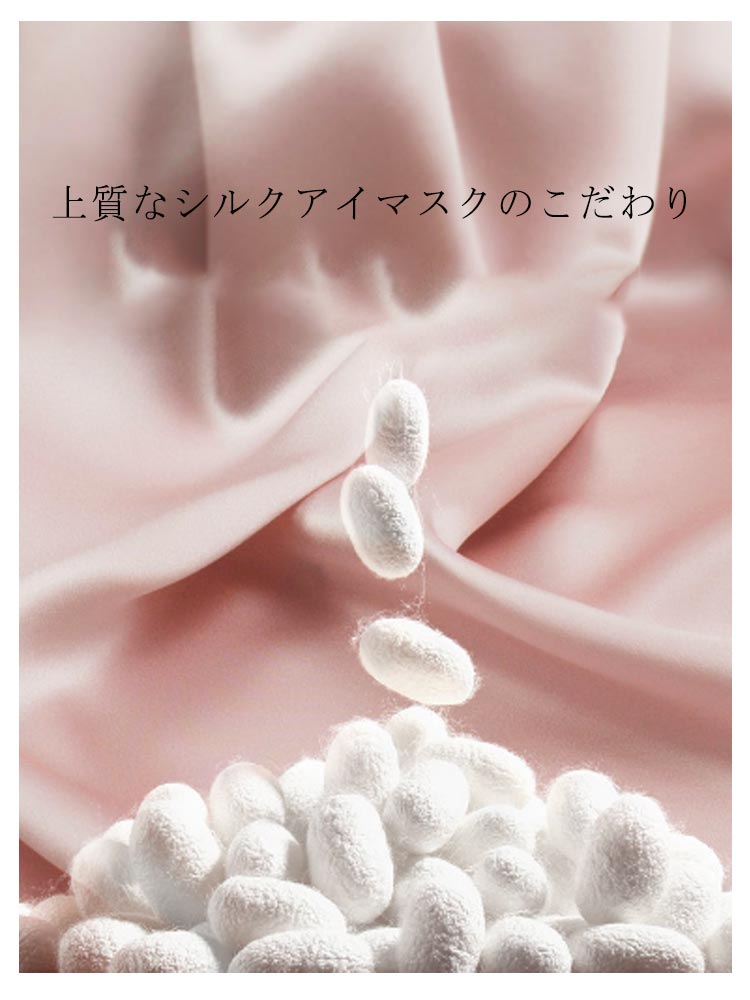 やわらかシルク100%の高級アイマスク。お昼寝、夜、移動中も、お休み用の極上シルクアイマスクです。眠りの妨げになる光をしっかり遮断します。通気性も抜群。耳にかけるタイプのアイマスクは耳が痛くなりがちですが、かぶって使うタイプなので、痛くなりません。軽く柔らかいシルクでやさしい付け心地です。ストラップの長さが調整可能で、好みの締めつけ具合にできます。上質なシルクアイマスクのこだわりやわらかで耳が痛くならないストラップを使用し、快適さを追求しました。自然な心地よい眠りを楽しんでいただけます。シルクは天然の素材なので、お肌にもやさしく、敏感肌の方でもお使いいただけます。