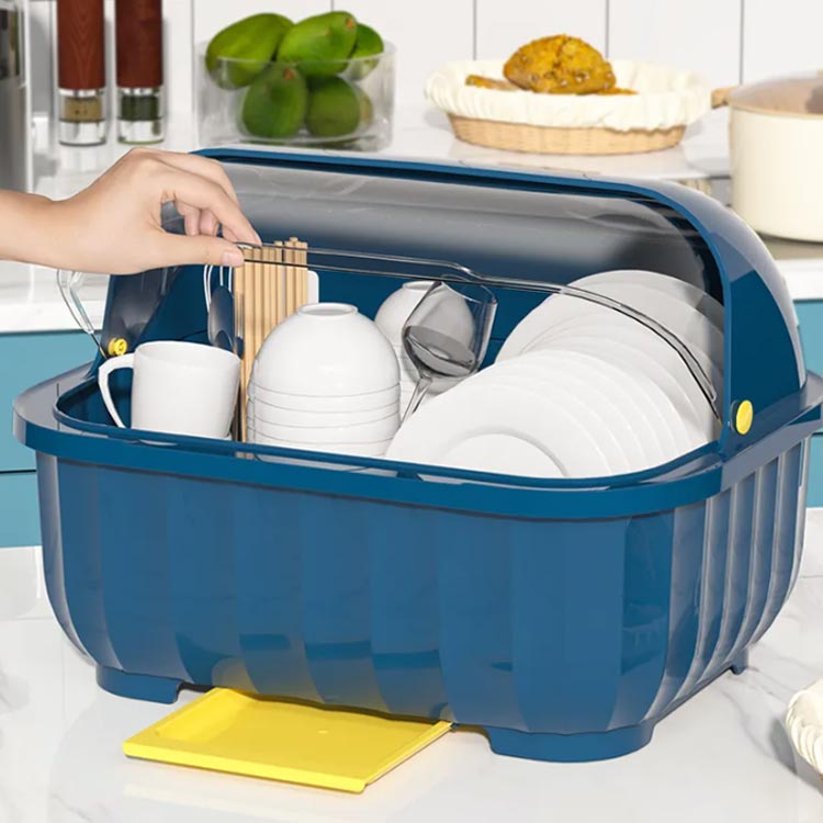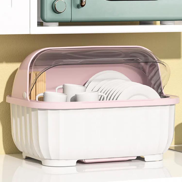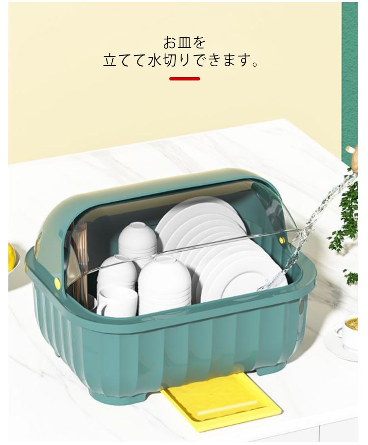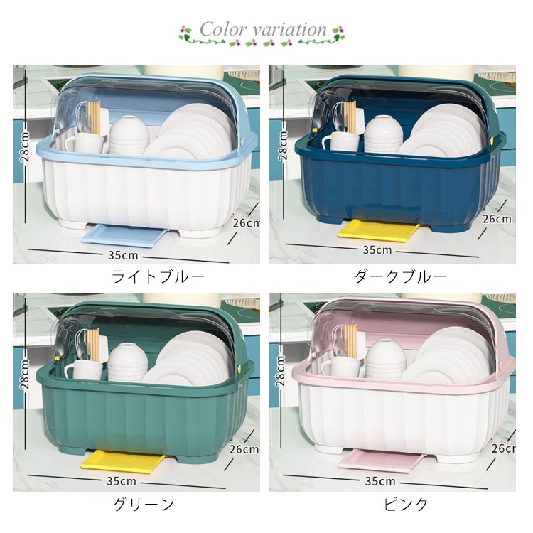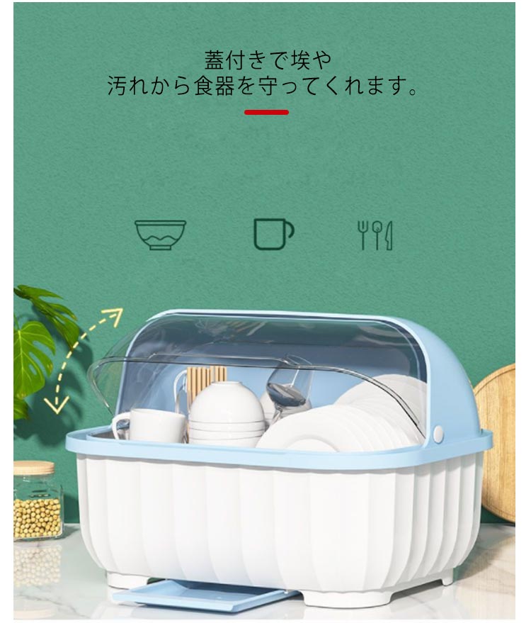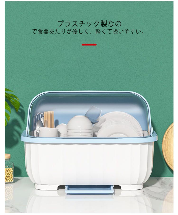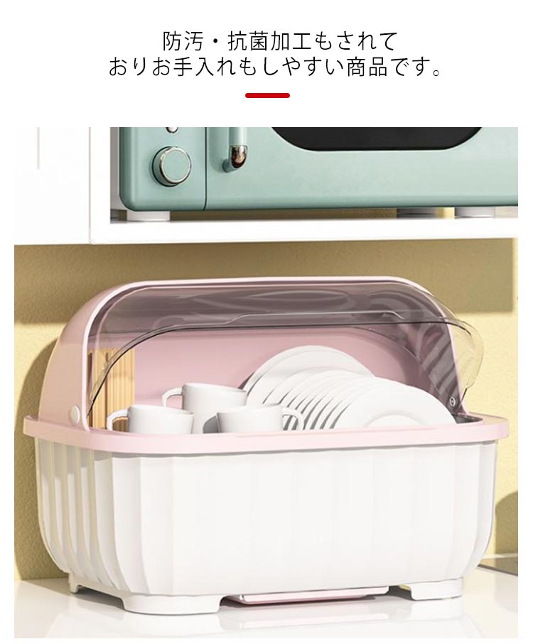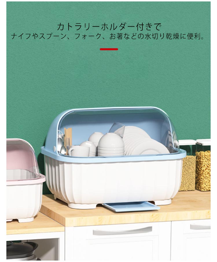 水切りカゴ 水切りラック フタ付き 水切りかご 水切りバスケット 抗菌 水切りトレー 食器 カゴ ディッシュラック ふた付き カバー付き おしゃれ かわいい 食器 保管 ケース 収納 箸置き付き プラスチック キッチン トレー ブルー ピンク