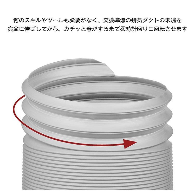 | 延長排気ダクト 移動式エアコン用排気管 【PP材質】高品質のポリプロピレンで作られています、柔軟性が高く、耐久性があり、持ち運びに便利です。 【伸縮式延長ダクト】日常の収納便利さを考えた上て、伸縮式にデザインされました。室内移動式エアコン用にピッタリです。 【インストールが簡単】何のスキルやツールも必要がなく、交換準備の排気ダクトの末端を完全に伸ばしてから、カチッと音がするまで反時計回りに回転させます。 | |