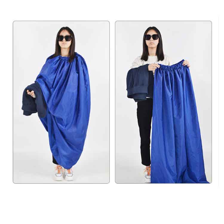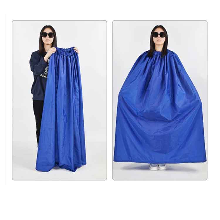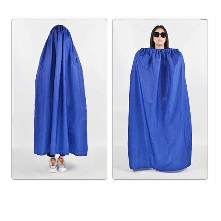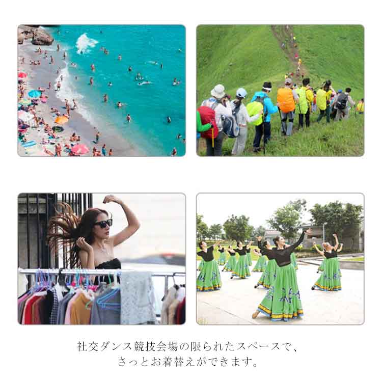 | 収納ポケットが付いたお酒落なお着替え用ケープです! 災害時の簡易更衣室代わりに防災グッツとしても役立ちます。 首元がゴム仕様になっているのと生地面積も広いのですぐに着替えやすい。 男女兼用タイプで、お子様から大人まで使用可能です。 社交ダンス競技会場の限られたスペースで、さっとお着替えができます。 | |