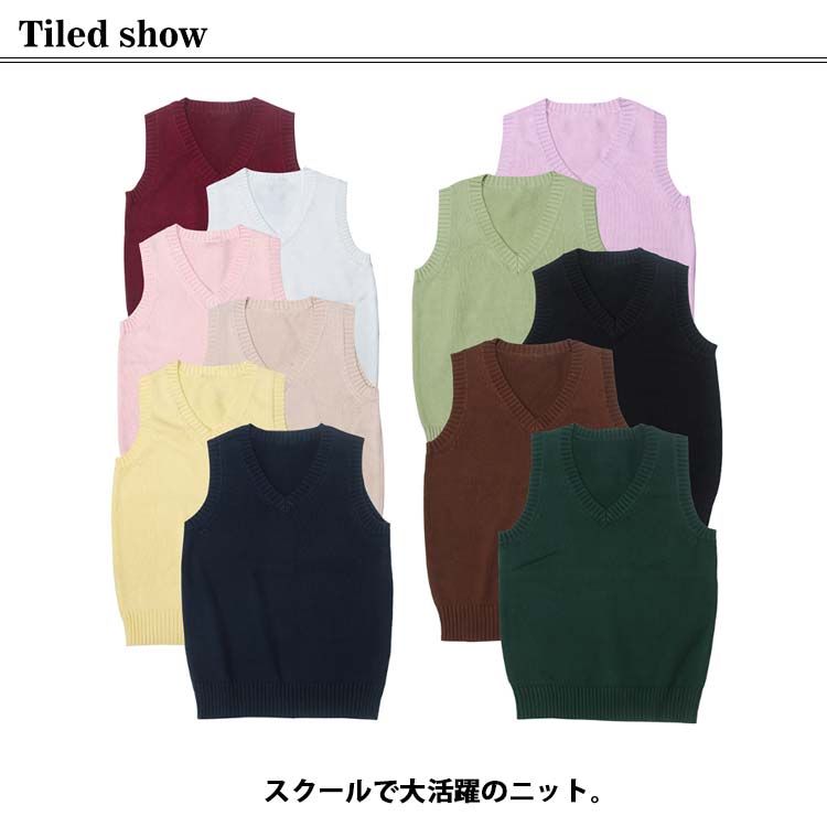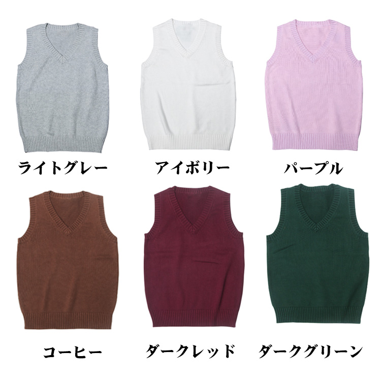スクールベスト ニット 女子 綿 スクール ベスト 制服 Vネック 春 夏 秋 冬 通学 学生 女子高生 高校生 中学生 コットン レディース 学校 シンプル 無地 大きいサイズ 全14色 XS~3XL 学生服 ニットベスト 送料無料