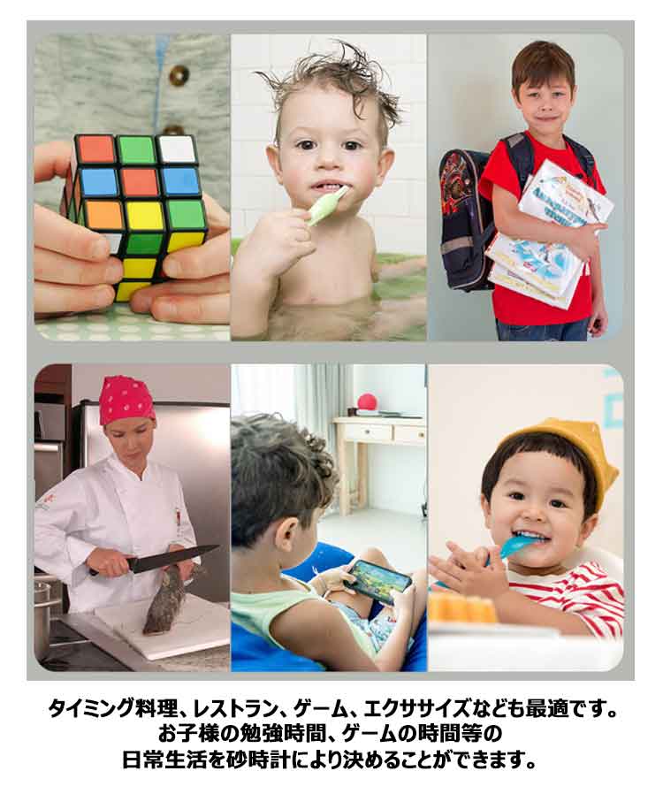 | シンプルでスタイリッシュなフォルムの砂時計です。 モダンなデザインはどんなインテリアとも相性が良くお部屋に馴染んでくれます。 お子様自身の時間感覚が養われ、時間の使い方をしっかりと学ぶことが出来ます。 タイミング料理、レストラン、ゲーム、エクササイズなども最適です。 耐久性と安全性を兼ね備えた、壊れにくく、長くお持ちできます。 お子様の勉強時間、ゲームの時間等の日常生活を砂時計により決めることができます。 | |