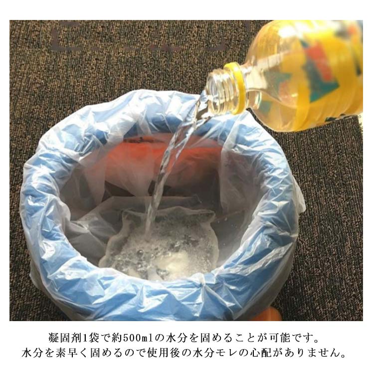 | 80回分 非常用簡易トイレ用凝固剤 凝固剤は個別包装となっており、衛生的で保管?持ち運びしやすいポータブルトイレ用凝固剤。 凝固剤1袋で約500mlの水分を固めることが可能です。水分を素早く固めるので使用後の水分モレの心配がありません。 水がなくても、ふりかけるだけでゼリー状に固めるから、被災など時に重宝する間違いありません。 アウトドアや車内の簡易トイレだけでなく、介護用ポータブルトイレにも役に立ちます。 | |