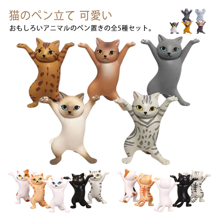 5個セット ペンスタンド 可愛い ネコ 猫のペン立て 動物のペン立て ぺんおき 猫の置物 モデル ペンホルダー かわいい おしゃれ 癒しグッズ 猫グッズ