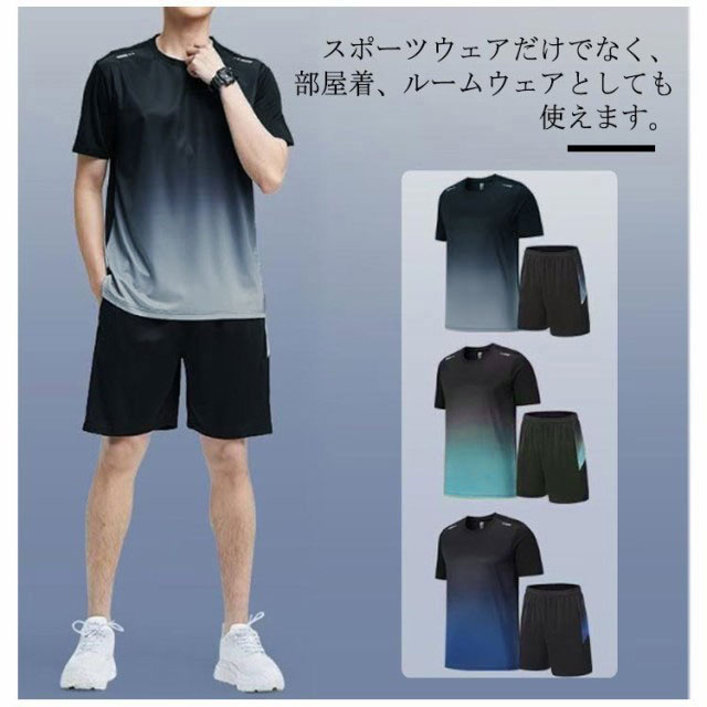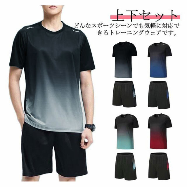 ランニングウェア メンズ 上下セット 夏物 半袖 Tシャツ ハーフパンツ 2点セット スポーツウェア トレーニングウェア 薄手 吸汗速乾 通気性 軽量 ドライ 部屋着 ジャージ ジム 大きいサイズ 送料無料