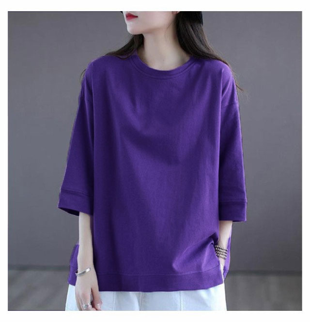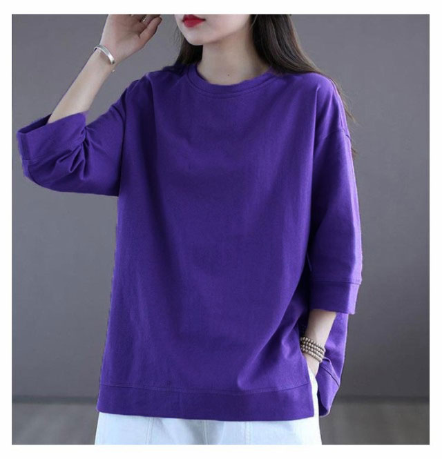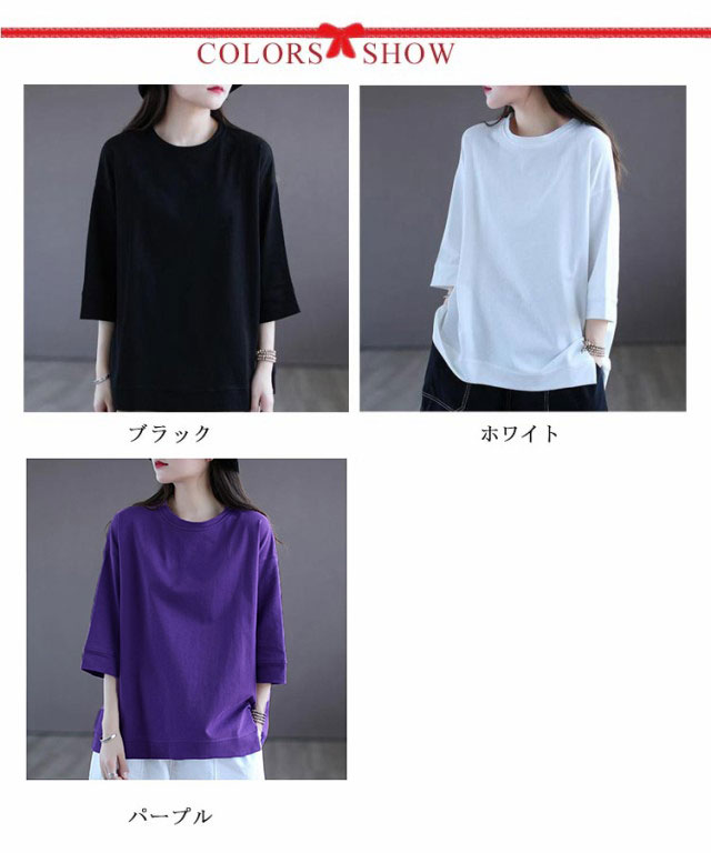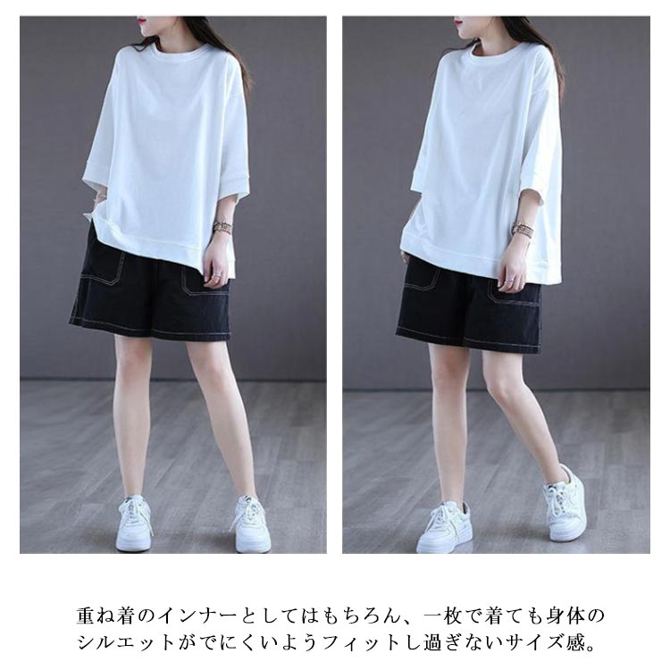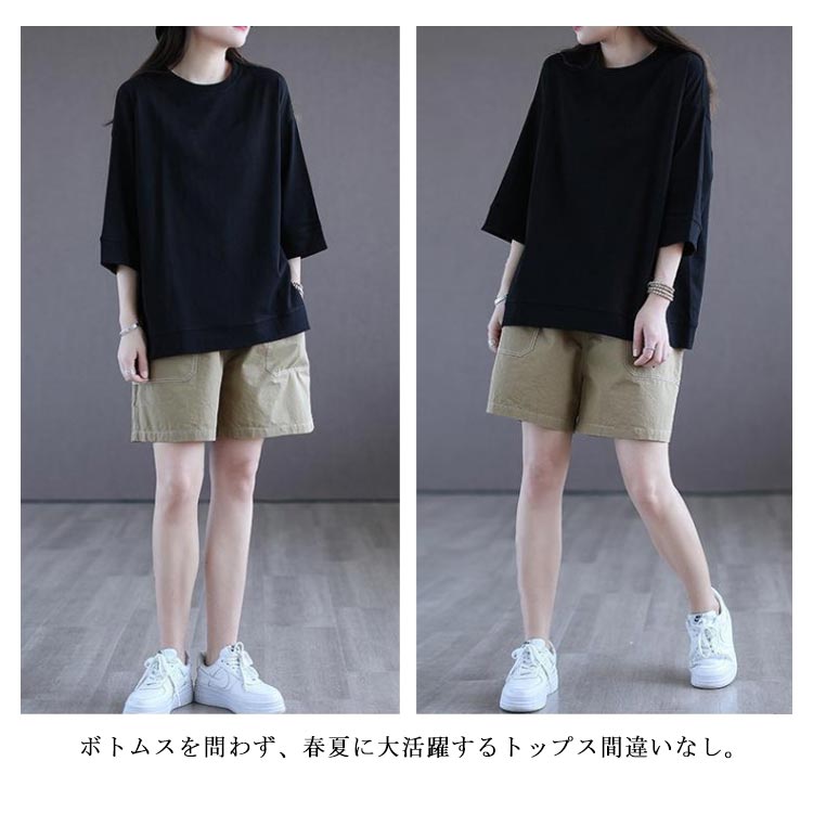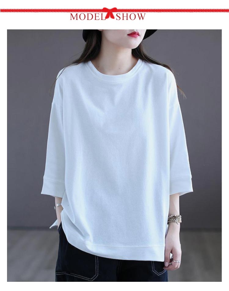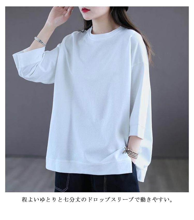 トップス tシャツ レディース 七分袖tシャツ コットンtシャツ 五分袖 カットソー ドロップスリーブ 無地tシャツ 7分袖 5分袖 ラウンドネック 夏服 ゆったり カジュアル おしゃれ 大きいサイズ