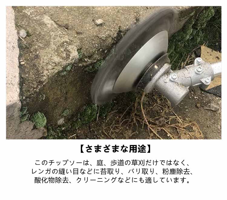 | 草刈り機 替え刃 超耐久性 2種類サイズ選択可! 草刈器交換用ヘッド 新規アップグレード、草取りが楽になります。 【耐久性のある】 すべての結び目ワイヤは、高品質のスチールで作られており、耐久性があります。地面との強力な摩擦により、この金属製トリマーヘッドは雑草をすばやく除去します。 【安全に使用】 ブレードとは異なり、結んだワイヤーで作られているため、非常に安全に使用できます。 ※スチールワイヤー材氏で擦り傷があるかもしれませんので、ご購入は慎重にお願いいたします。 【幅広い互換性】 他のほとんどすべての刈払機に適しています。 警告のヒント:雑草ブラシを使用するときは、防護服とゴーグルを着用してください。 【さまざまな用途】 このチップソーは、庭、歩道の草刈だけではなく、レンガの縫い目などに苔取り、バリ取り、粉塵除去、酸化物除去、クリーニングなどにも適しています。石やハードブロックを打つとき、それは正常に動作することができます。 <お勧めポイント> ●均一性 研磨?延伸後の色合いのばらつきがない ●効率が高い コケ畑の掃除、金属の錆取り、草取りは効率的で手間がかかりません ●放熱性が良い ばね鋼線と構造の空隙が大きく弾性があるので工作物の表面が発熱で黒くなりません | |