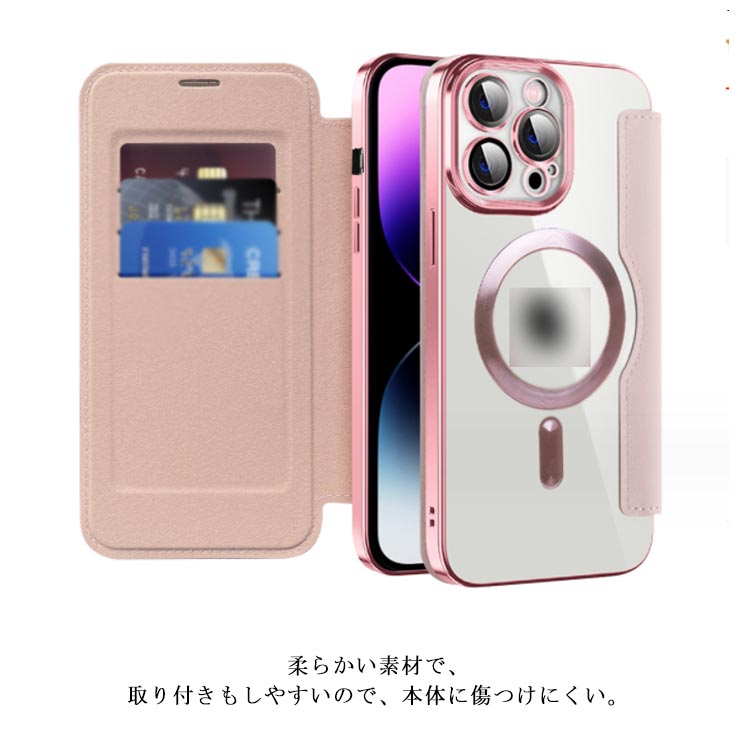 iPhone15 ケース 手帳型 magsafe ワイヤレス充電 カメラレンズ保護 背面クリア 透明 iPhone 15 Pro Max ケース マグセーフ iphone14pro 13 12Pro iphone 15Plus カバー カード収納 アイホン15 ケース 全面保護 レザー スマホケース 薄型 通勤 耐衝撃 プレゼント