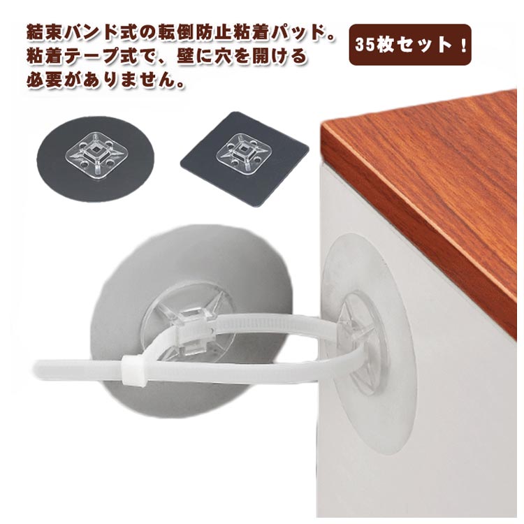 35枚セット!穴開け不要 家具転倒防止グッズ テレビてんとう防止 家具転倒防止器具 防災 災害防止 壁固定 転倒防止金具 タンス 食器棚 防災用品 耐震グッズ 取り付け 地震 パソコン 耐震ストッパー 耐震ベルト