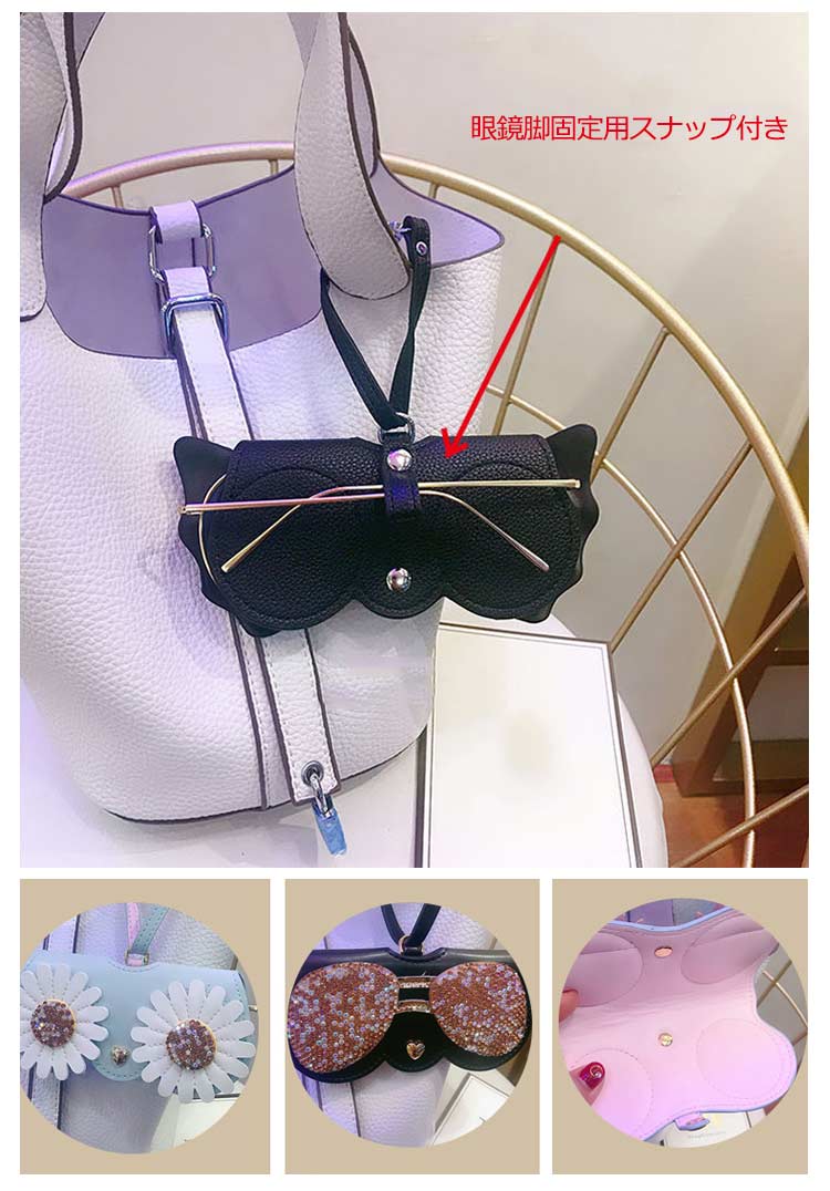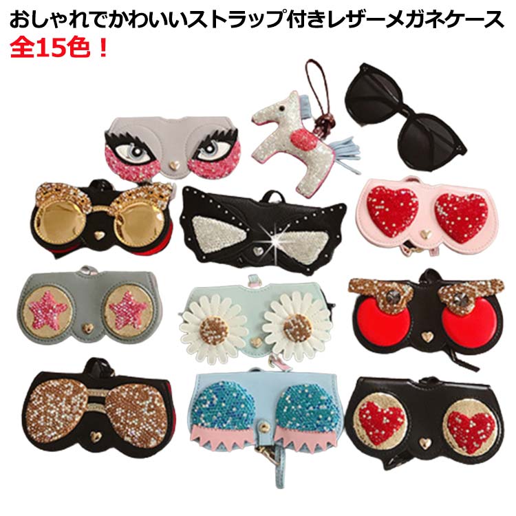 【送料無料】メガネケース サングラスカバー ストラップ レザー 人工 ジルコニア きらきら キラキラ かわいい おしゃれ レディース メガネ入れ PUレザー ストラップ付き サングラスケース おしゃれ 眼鏡ケース メガネ収納 メガネ保護 眼鏡入れ 持ち運び