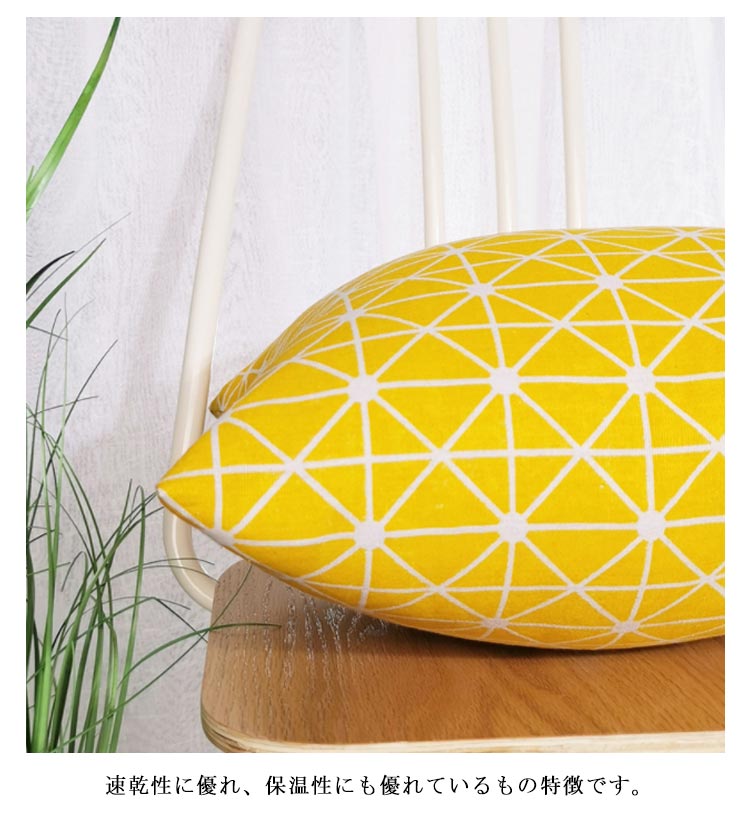 | モノトーンデザインのスタイリッシュクッションカバー モノトーンデザインで、大人のスタリッシュ空間を。 やわらかく触り心地が良い上、丈夫な素材を採用。 速乾性に優れ、保温性にも優れているもの特徴です。 | |