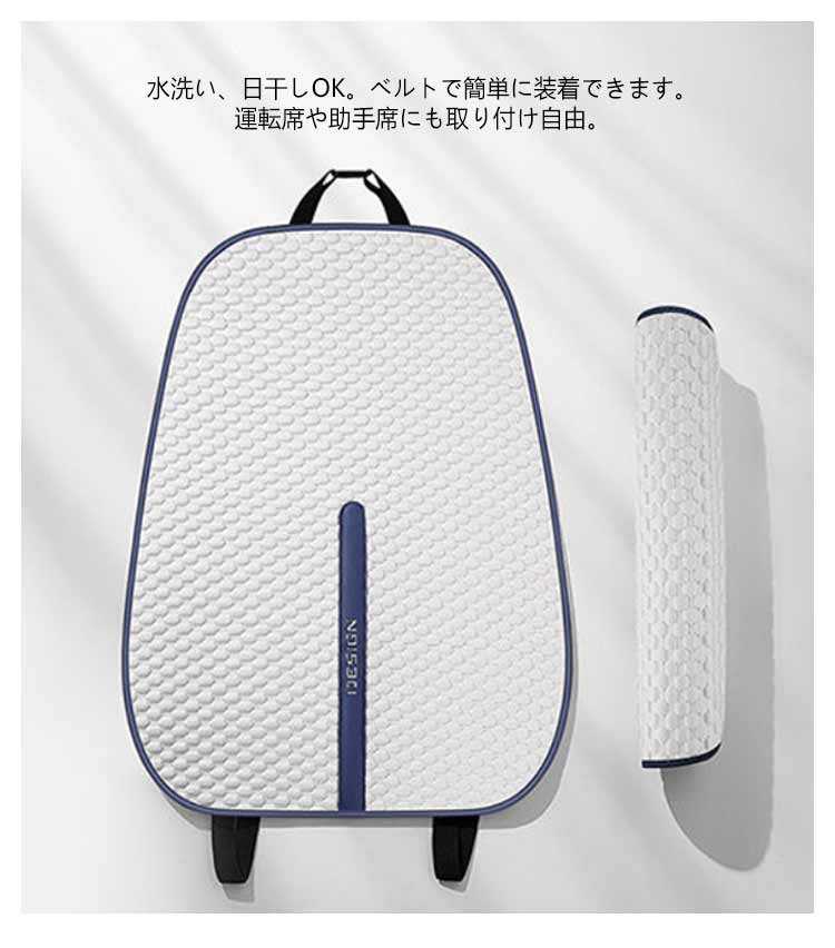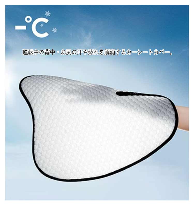 夏の暑さ対策にぴったり。汗による嫌な臭いやベタつきを抑えます。車用 涼感シートカバー。立体構造のアイスシルクを使用。熱がこもらず通気性抜群で、涼しく快適です。運転中の背中・お尻の汗や蒸れを解消するカーシートカバー。水洗い、日干しOK。ベルトで簡単に装着できます。運転席や助手席にも取り付け自由。普通車、軽自動車、タクシーやトラックの商用車など、あらゆる車種で対応しております。