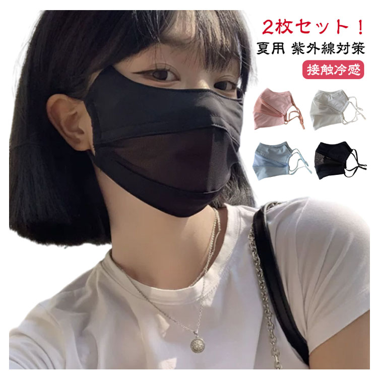 2枚セット フェイスカバー 息苦しくない 冷感 マスク uv 接触冷感 マスク 洗える 日焼け uvカット 洗える 夏用 マスク 紫外線対策 おしゃれ 春 涼しい ひんやり さらさら 小顔効果 レディース 大人用 スポーツマスク 日よけ 顔 マスク テニス ゴルフ 送料無料
