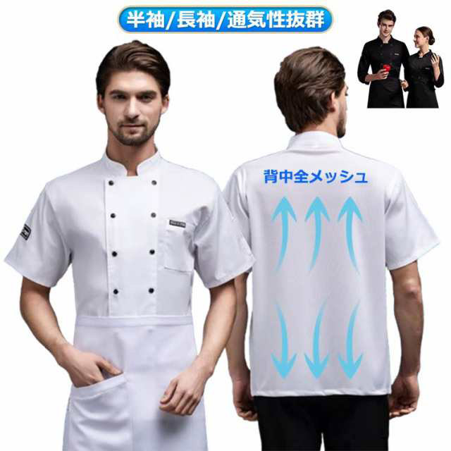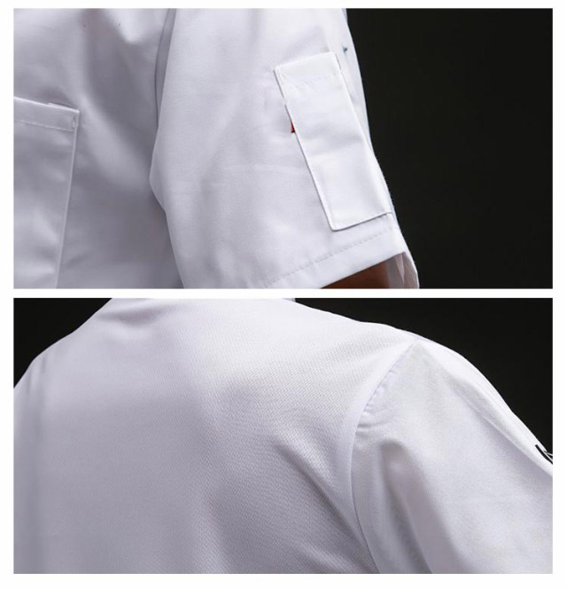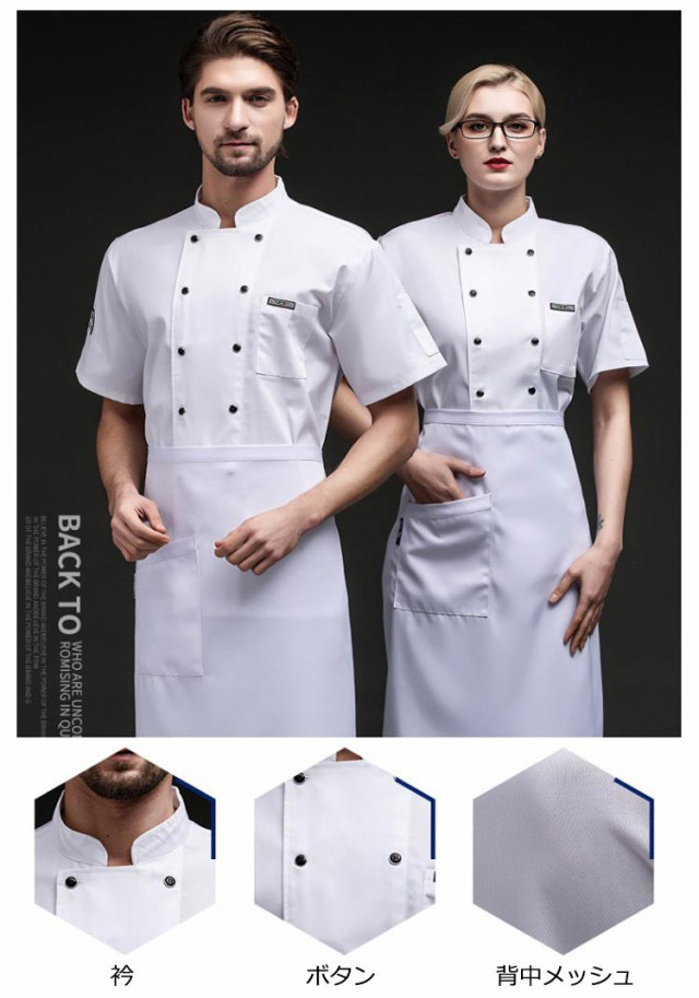 薄手 調理服 料理長 コックシャツ 半袖 パン屋 コックウェア トップス 通気性抜群 後ろメッシュ コックシャツ ユニフォーム 作業服 コックコート 飲食店 厨房用制服 ケーキ屋 コックコート トップス シェフ制服 コック服 通気性