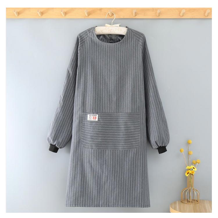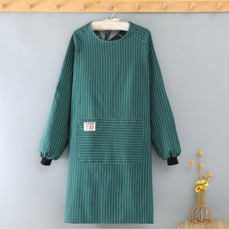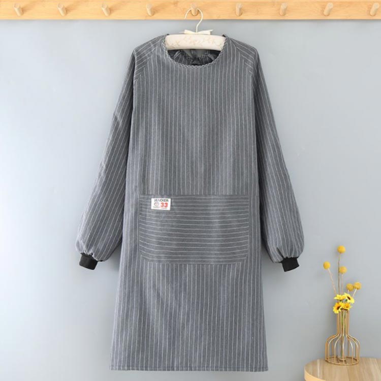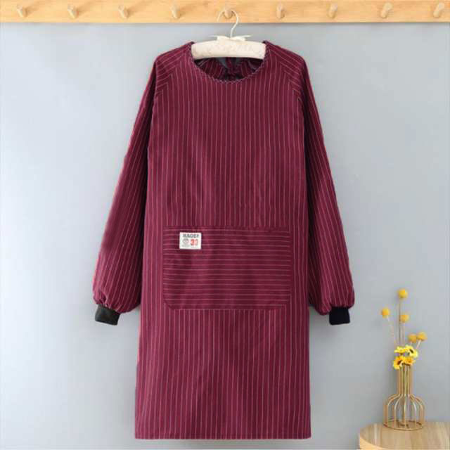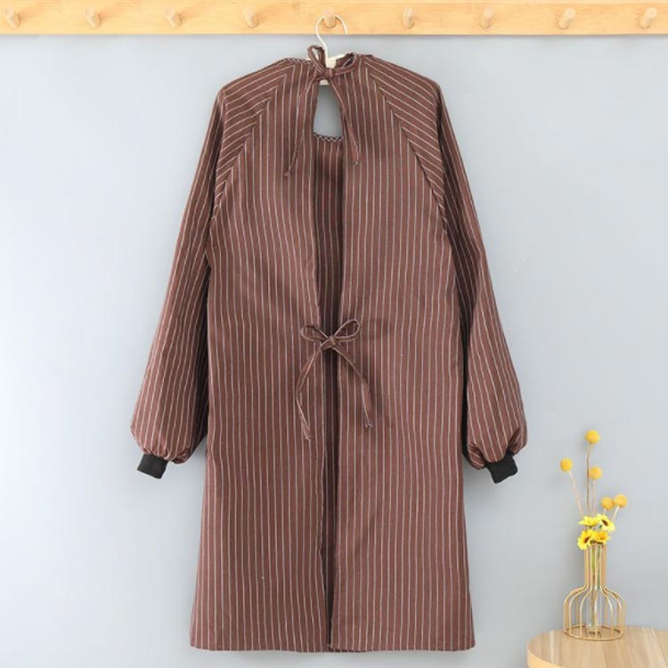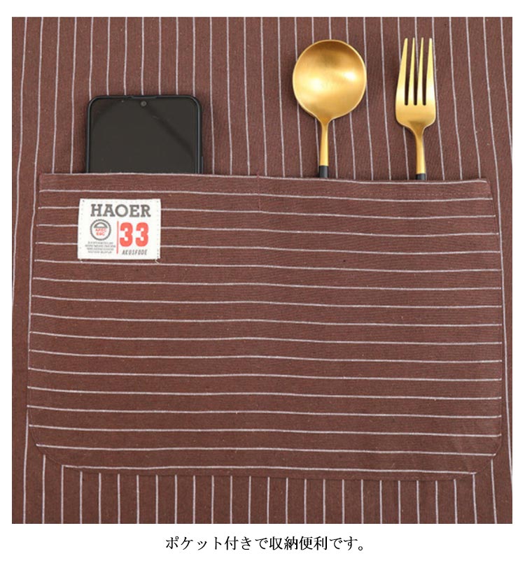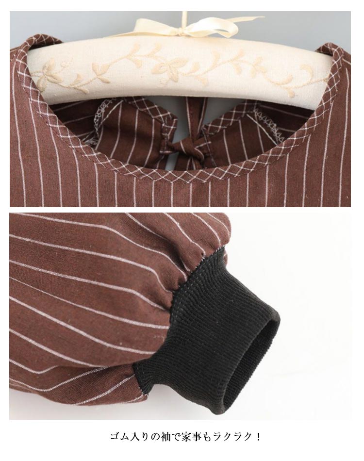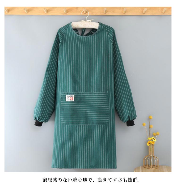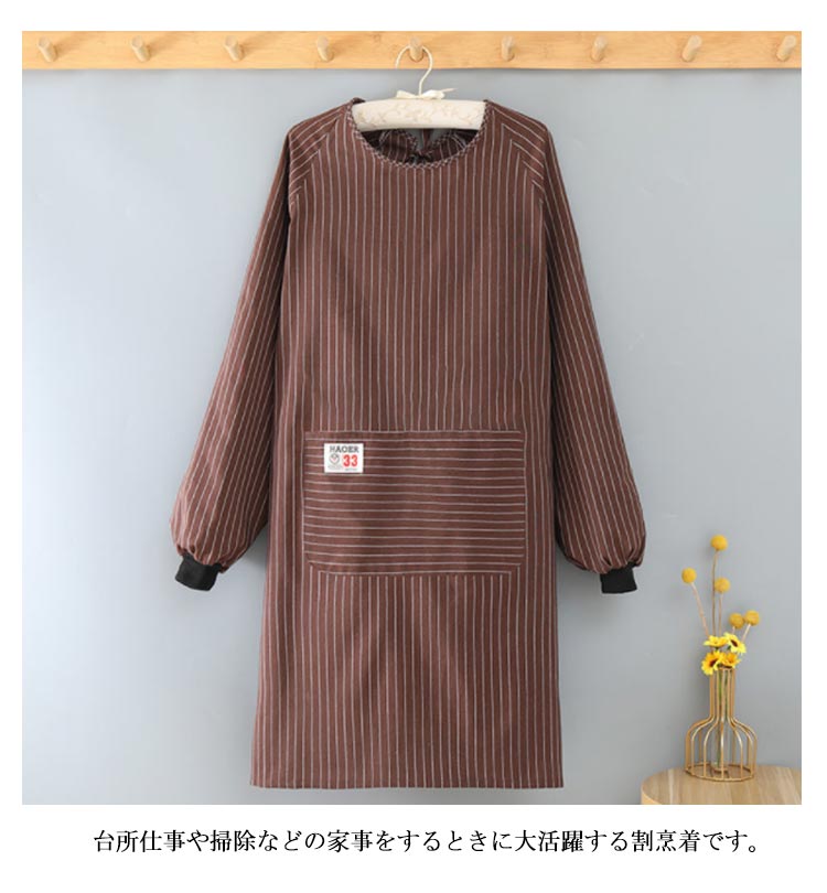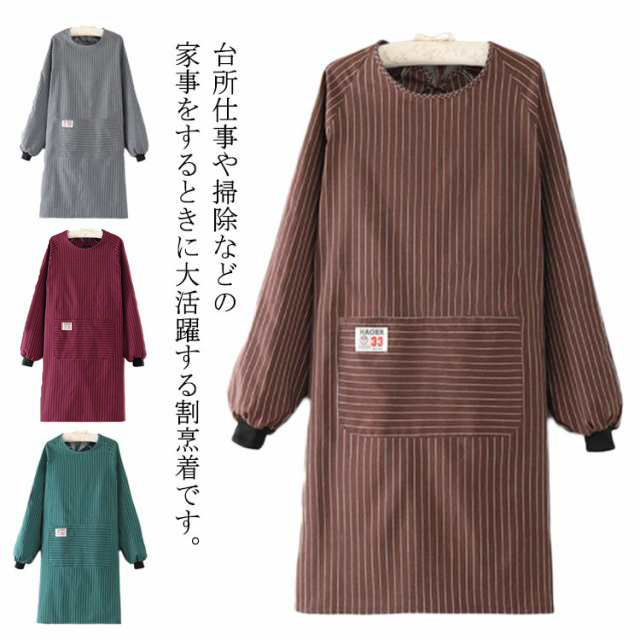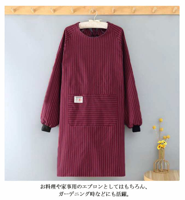 割烹着 エプロン 袖付き 後ろ紐留め メンズ レディース 大きいサイズ ストライプ柄 長袖 ポケット付き 保育士 料理教室 キッチン ポケット付き 汚れ防止 ガーデニング 防油 作業用 ワーク服 男女兼用 送料無料