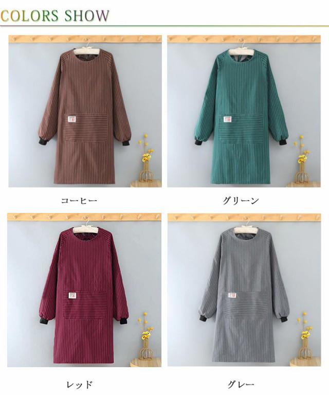 | 台所仕事や掃除などの家事をするときに大活躍する割烹着です。 ゴム入りの袖で家事もラクラク! 窮屈感のない着心地で、動きやすさも抜群。 ポケット付きで収納便利です。 サッとかぶり腰ヒモを結ぶだけで脱着可能。 お料理や家事用のエプロンとしてはもちろん、ガーデニング時などにも活躍。 | |