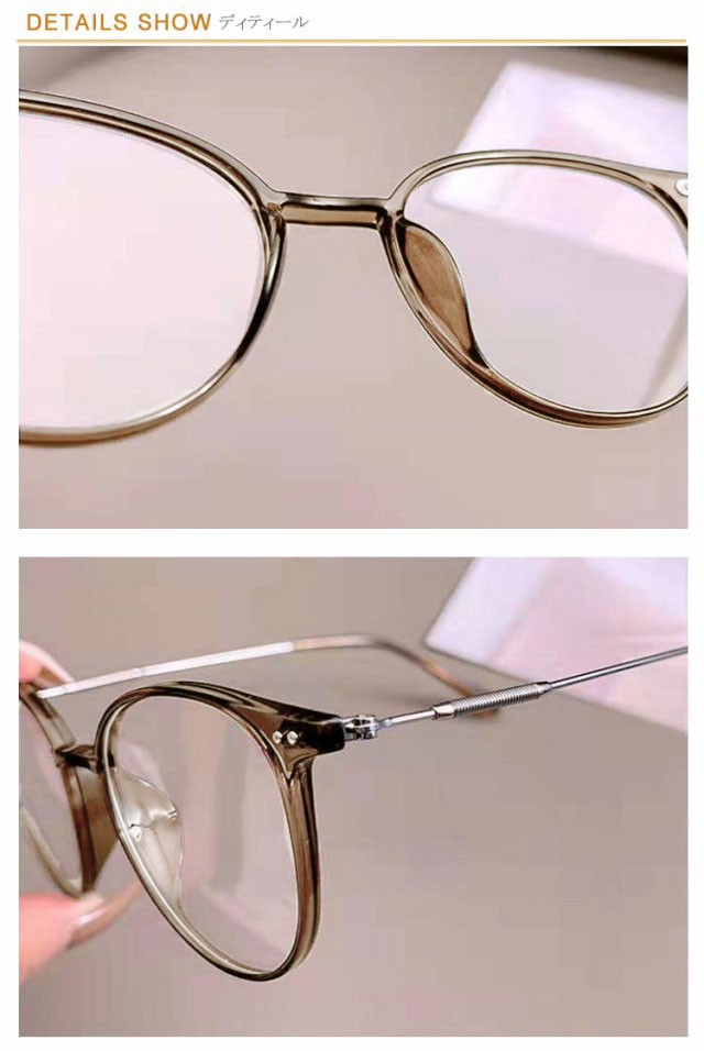 | 度なし/度付きブルーライトカットメガネ。 パソコンやスマホなどのデジタルデバイスから発生するブルーライトをカットできます。 日常生活において、ブルーライト軽減のpcメガネとして利用できます。 超軽量素材を採用して長時間使ってもストレスなし、疲れにくいです。 流行している透明フレームとボストン形のデザインを採用した。 | |