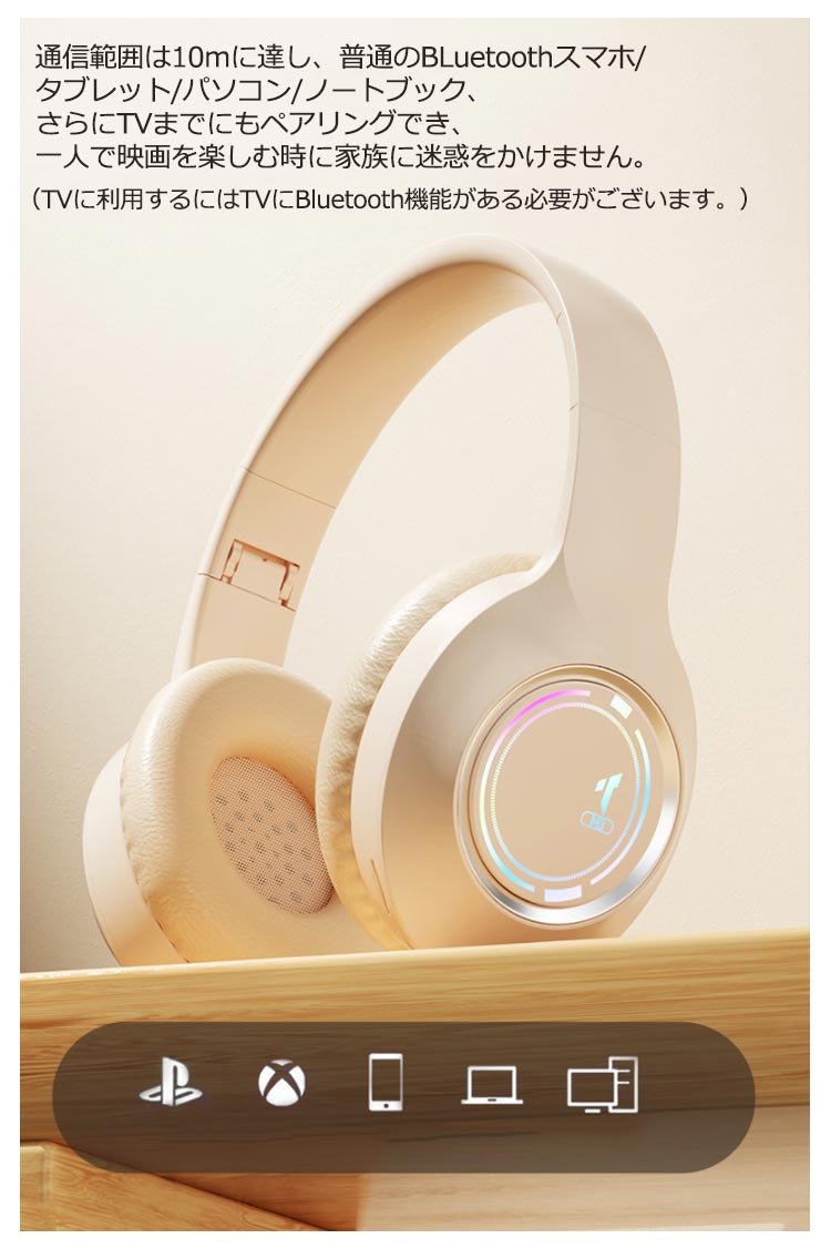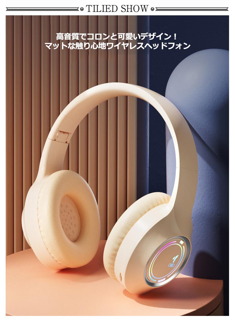 【最新版 Bluetooth5.3 / Bluetooth機能搭載の各種デバイスに対応】【折り畳み式】【無線&有線両用】高音質でコロンと可愛いデザイン!マットな触り心地ワイヤレスヘッドフォンBluetooth(ブルートゥース)機能搭載の各種デバイスに対応。通信範囲は10mに達し、普通のBLuetoothスマホ/タブレット/パソコン/ノートブック、さらにTVまでにもペアリングでき、一人で映画を楽しむ時に家族に迷惑をかけません。(TVに利用するにはTVにBluetooth機能がある必要がございます。)先進なノイズキャンセル技術(通話のノイズキャンセリング)を結合して、周囲のノイズを有効に低減し、高音/中音/低音のバランスを取って、豊富でダイナミックな音質を提供すると同時にクリアな通話効果を確保し、優れたミュージック&通話体験を与えます。使う時にケーブルがどこかに引っ掛ける面倒さがなく、電車中でも気軽に使えます。折り畳み型は空間を節約し、持ち運び便利です。