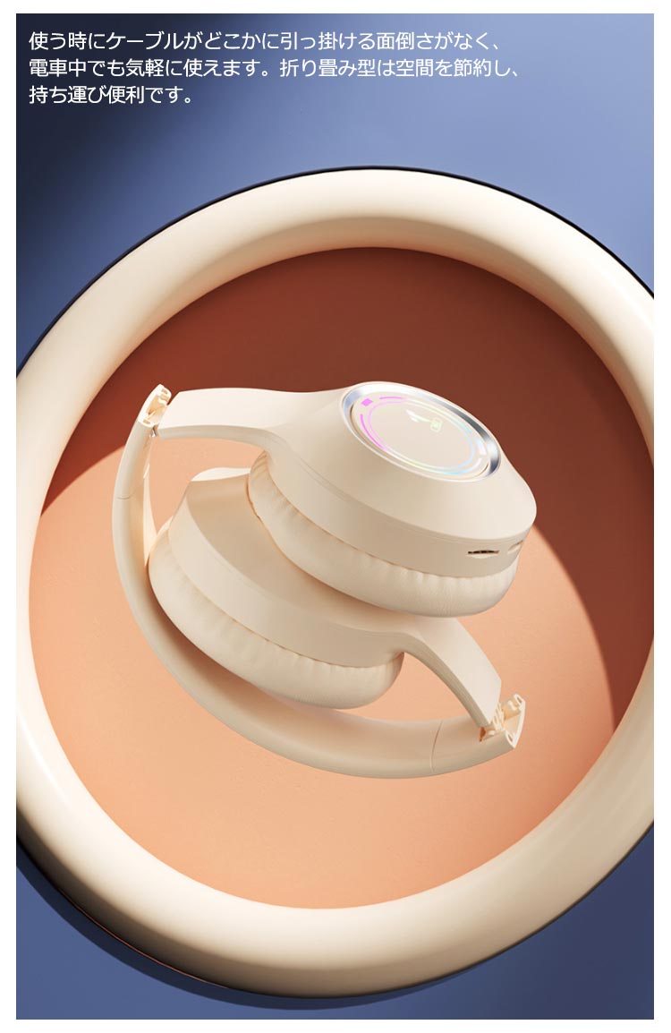 | 【最新版 Bluetooth5.3 / Bluetooth機能搭載の各種デバイスに対応】 【折り畳み式】 【無線&有線両用】 高音質でコロンと可愛いデザイン!マットな触り心地ワイヤレスヘッドフォン Bluetooth(ブルートゥース)機能搭載の各種デバイスに対応。 通信範囲は10mに達し、普通のBLuetoothスマホ/タブレット/パソコン/ノートブック、さらにTVまでにもペアリングでき、一人で映画を楽しむ時に家族に迷惑をかけません。 (TVに利用するにはTVにBluetooth機能がある必要がございます。) 先進なノイズキャンセル技術(通話のノイズキャンセリング)を結合して、周囲のノイズを有効に低減し、高音/中音/低音のバランスを取って、豊富でダイナミックな音質を提供すると同時にクリアな通話効果を確保し、優れたミュージック&通話体験を与えます。 使う時にケーブルがどこかに引っ掛ける面倒さがなく、電車中でも気軽に使えます。折り畳み型は空間を節約し、持ち運び便利です。 | |