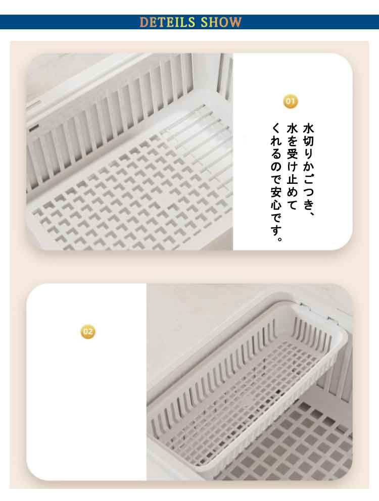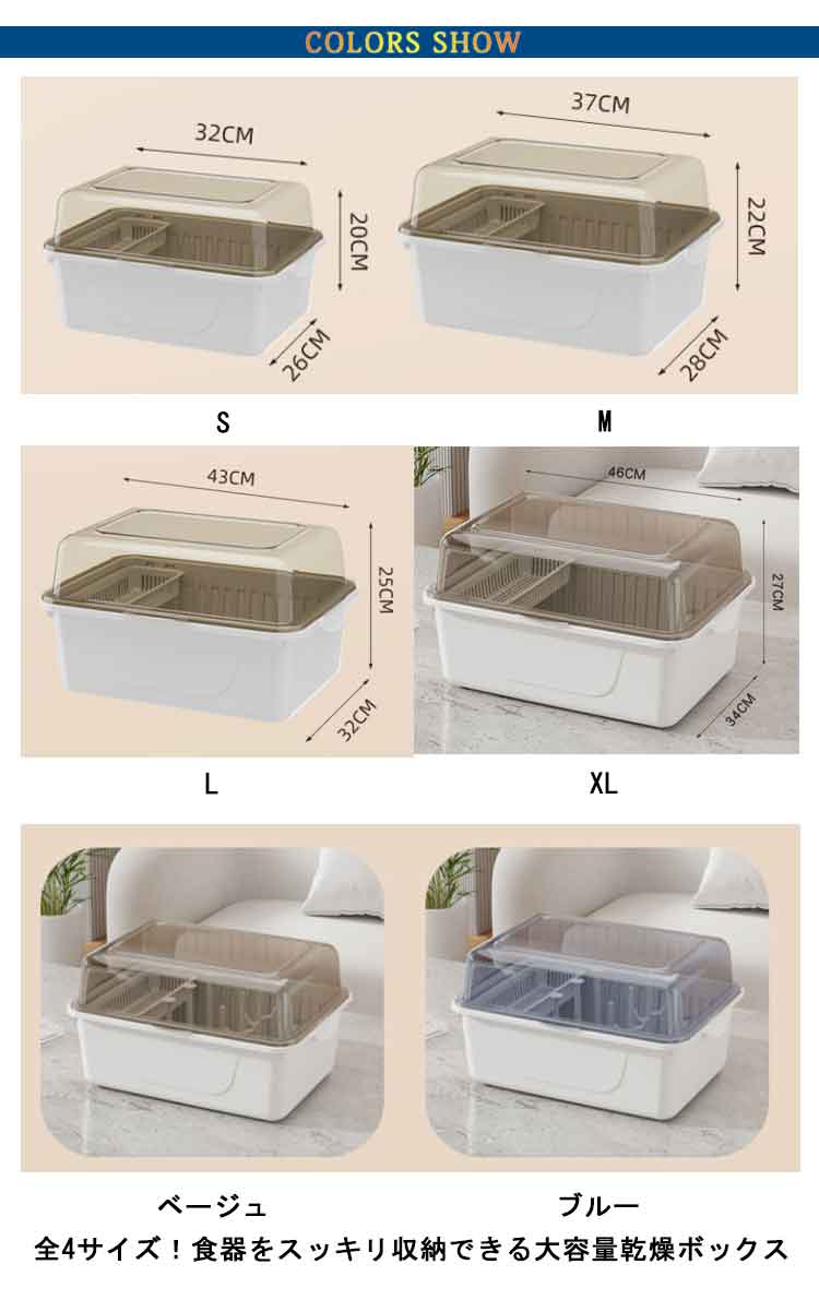 | 全4サイズ!食器をスッキリ収納できる大容量乾燥ボックス 一度使用したら、必ず“台所テーブルの上に散乱していた食器が綺麗に収まりスッキリしました”と思われる! お箸やスプーンの置く場所が設置しており、別々収納できます。 水切りかごつき、水を受け止めてくれるので安心です。 透明な材質を使用して、中身が一目でわかって使用便利です。 高質量のPP素材で作られており、耐久性があり安全に使用できます。 | |