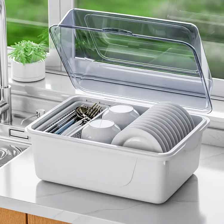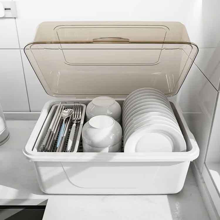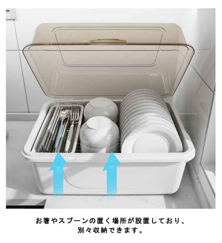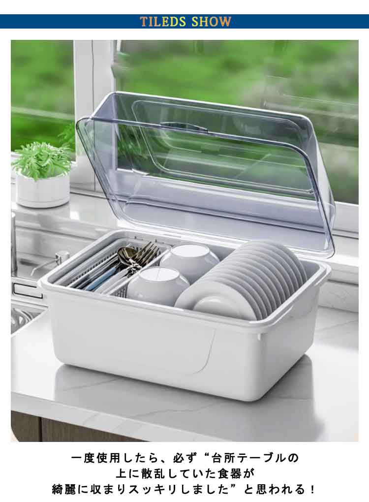 食器収納 ボックス 水切りラック 食器棚 キッチン収納 フタ付き 箸置き付き 北欧風 大容量 食器乾燥ボックス 食器保管 クリア 蓋付き 透明 食器ドレンバスケット キッチン収納 タテ置き 防塵 防虫 水切りカゴ 茶碗収納ボックス ギフト 送料無料