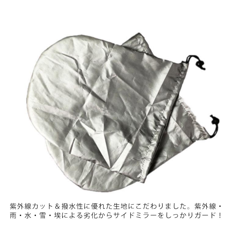 | サイドミラーの汚れ?劣化防止に! 紫外線カット&撥水性に優れた生地にこだわりました。紫外線?雨?水?雪?埃による劣化からサイドミラーをしっかりガード! 冬の凍結防止や鳥のフン対策にも 取り付け簡単!サイドミラーを覆えて、絞り紐を引っ張るだけ!簡単にカバーをかけることができます。 汚れたら丸洗い可能! | |