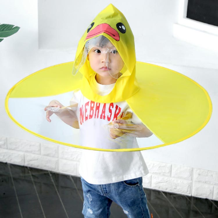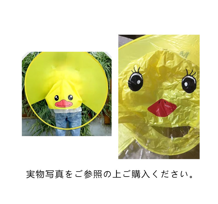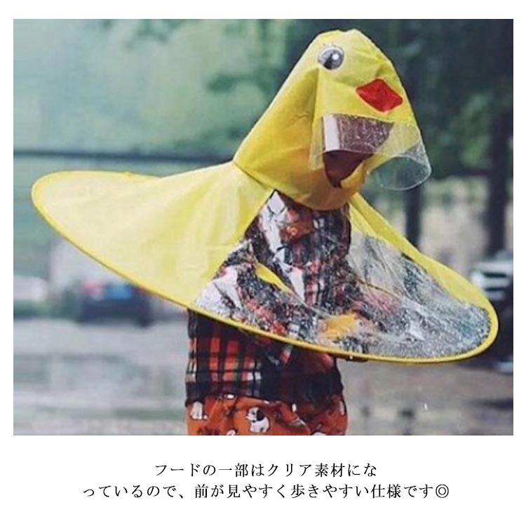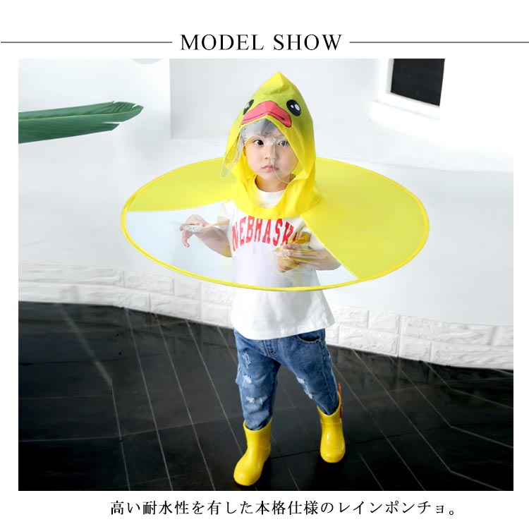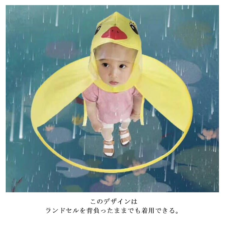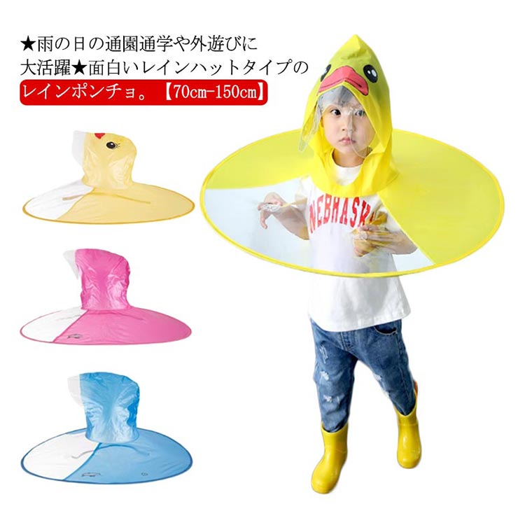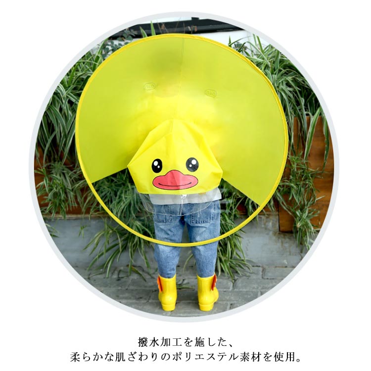 | ★雨の日の通園通学や外遊びに大活躍★面白いレインハットタイプのレインポンチョ。【70cm-150cm】 高い耐水性を有した本格仕様のレインポンチョ。 撥水加工を施した、柔らかな肌ざわりのポリエステル素材を使用。 このデザインはランドセルを背負ったままでも着用できる。 フードの一部はクリア素材になっているので、前が見やすく歩きやすい仕様です◎ アウトドアだけでなく雨の日の通学にもおすすめです。 | |