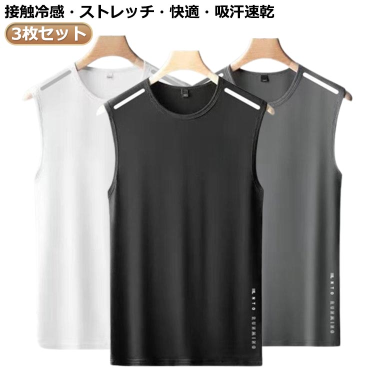 3枚セット タンクトップ メンズ ノースリーブ 接触冷感 トップス ドライ メッシュ ストレッチ 吸汗 速乾 インナー 男性 メッシュtシャツ シンプル 伸縮性 ランニングシャツ スポーツウエア ジム トレーニングウェア 送料無料