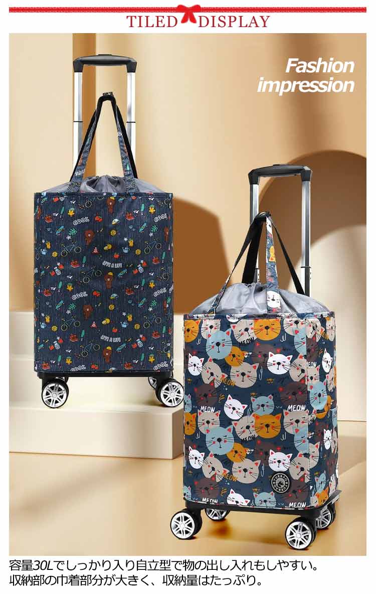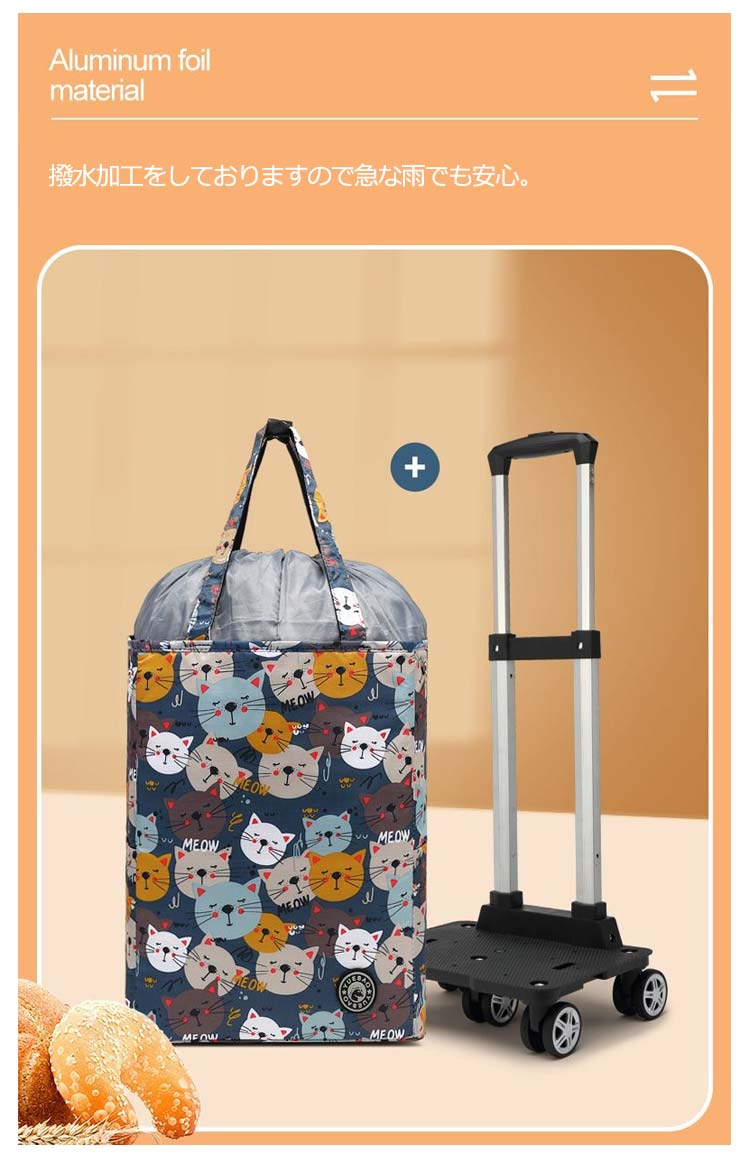 ショッピングカート 30L 折りたたみ 4輪 横押し 軽量 保冷 保温 ショッピングバッグ キャスター付き 巾着 キャリーバッグ キャリーカート 買い物カート ショッピングキャリー エコバッグ 防水 撥水加工 敬老の日 プレゼント 保冷バッグ お買い物